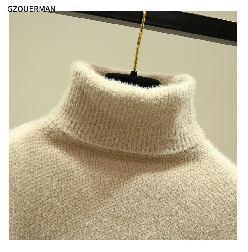 Winter High Neck Sweater Women’s Plush Thickened One Piece Large Underlay Knitted Shirt with a Slim Fit Warm Top