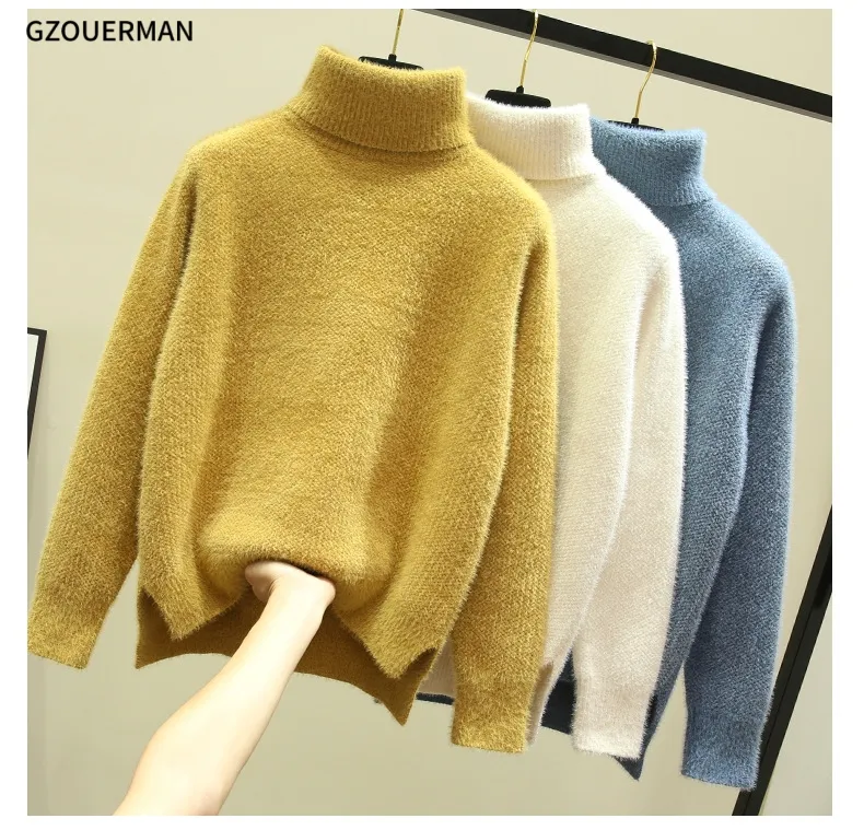 New Fashion Women Winter Sweater Korean Solid Color Pullover High Collar Choker Knit Thicken Casual Outwear Knitwear