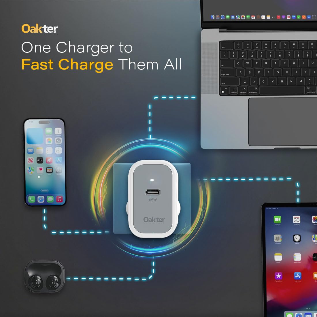 Oakter 65W Fast Charger (Charger with Cable)