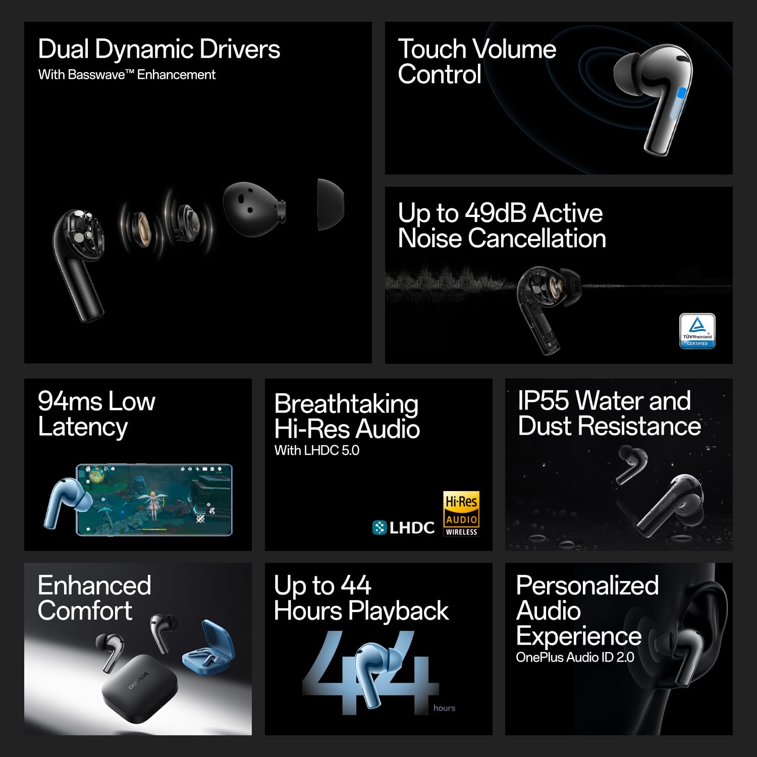 11 reviews for OnePlus Buds 3 TWS in Ear Earbuds with Upto 49dB Smart Adaptive Noise Cancellation,Hi-Res Sound Quality,Sliding Volume Control,10mins for 7Hours Fast Charging with Upto 44Hrs Playback (Splendid Blue)