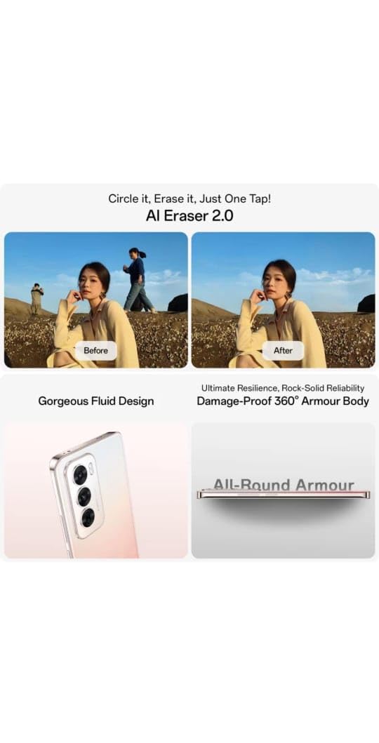 AI Eraser 2.0 Circle it, Erase it, Just One Tap! Clear frames aid better memories. A little scribble is all it takes. Remove unwanted objects or people from your pictures with ease. AI Clear Face Turn Every Photo into a Gorgeous HD One! Blurred group pictures are a concept of the past. OPPO AI masters increased clarity with reduced distortion for up to ten people. Making group shots, sharper than ever!” AI Studio Imagination Brought Alive! Experience picture transformation Magic! With OPPO AI elevate your image game! One picture has Infinite possibilities. To add to the fun, you can invite friends to make group shots fun! AI Smart Image Matting 2.0 Get Creative, Get Crafty! Your picture playground awaits, mask out objects and make your pictures more creative be it people or pets, and add stickers, backgrounds, and beyond – all in-app! Low Signal to No Signal, We’ve Got You Covered! Make voice calls even when there’s no mobile signal. The impossible just became possible. Smart technology boosts Bluetooth power so you can still reach out to those nearby. AI Clear Voice Experience Clarity in Conversations Amplify audio across scenarios of shopping, traveling festivals, or kids running a riot, our OPPO AI tech isolates the caller’s voice and minimizes background noise, so every word is clear to the ear.