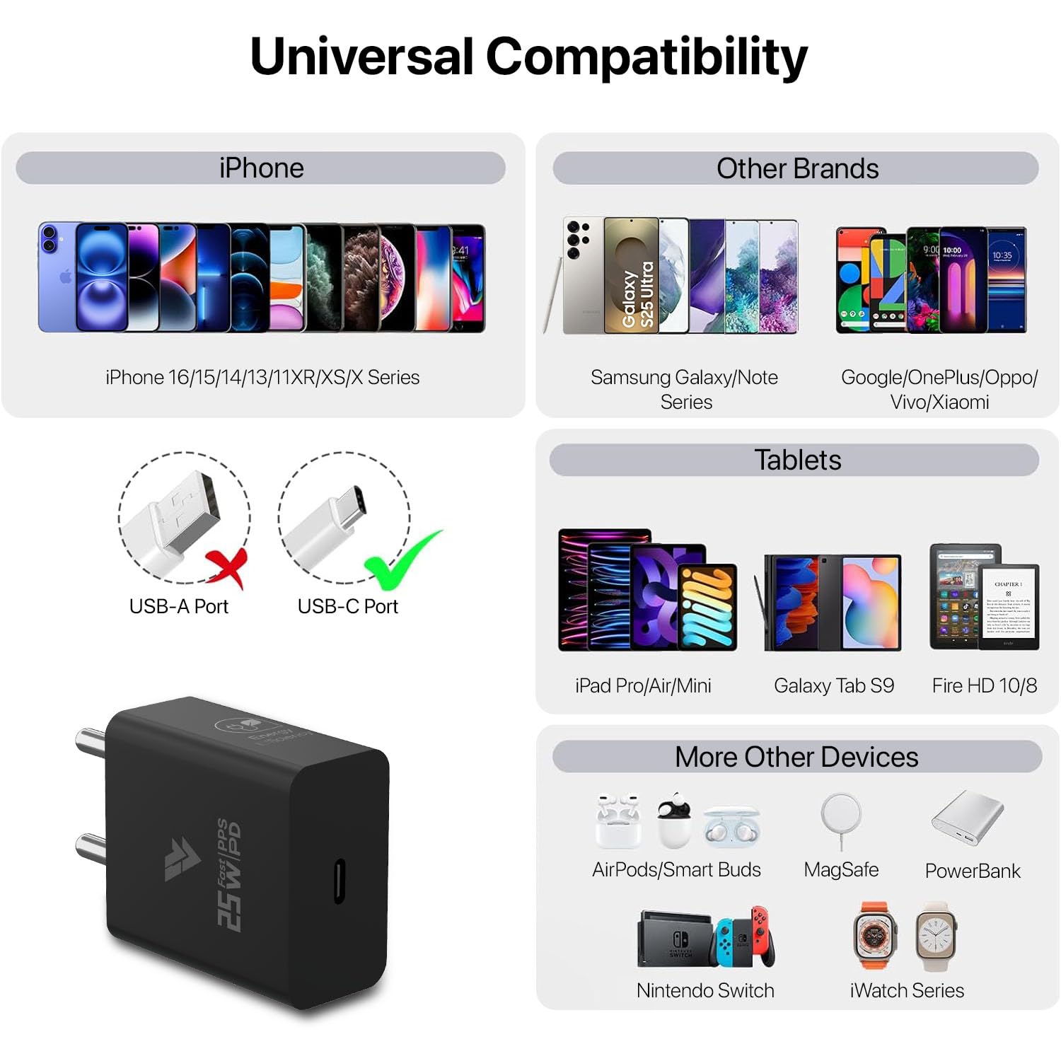 ✅【LIGHTWEIGHT & PORTABLE DESIGN】 DR VAKU 25W Charger is ultra-compact, portable and very convenient for business travelers to carry. The charger can be carry in a handbag, backpack, or carry-on luggage without taking up too much space.