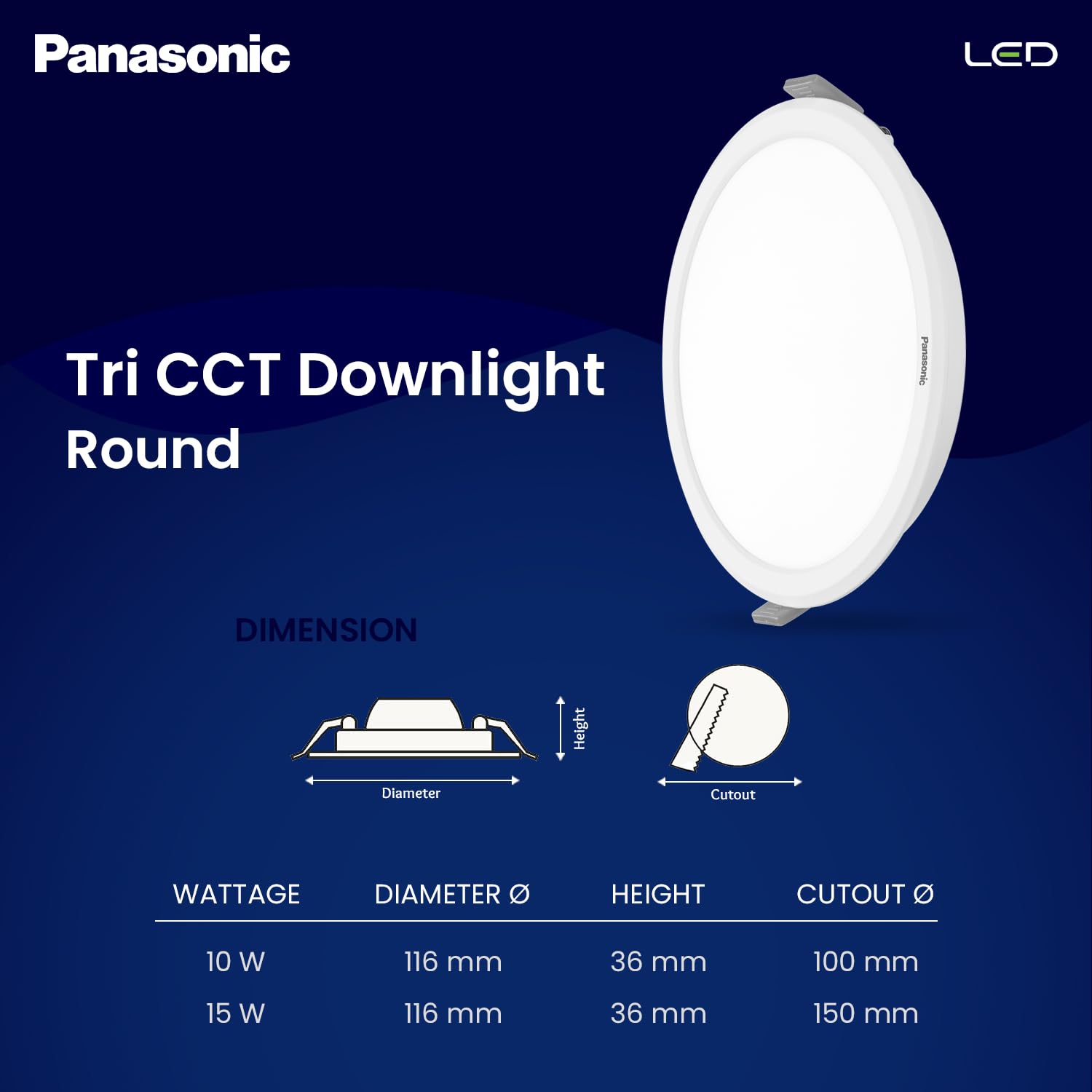 Panasonic 10W 3 in 1 Colour Led Round Downlight, Tri Colour Recessed False Ceiling Light for Home, Office with 100mm Cutout, (Cool, Natural & Warm White -PDLM0110CNW-2)