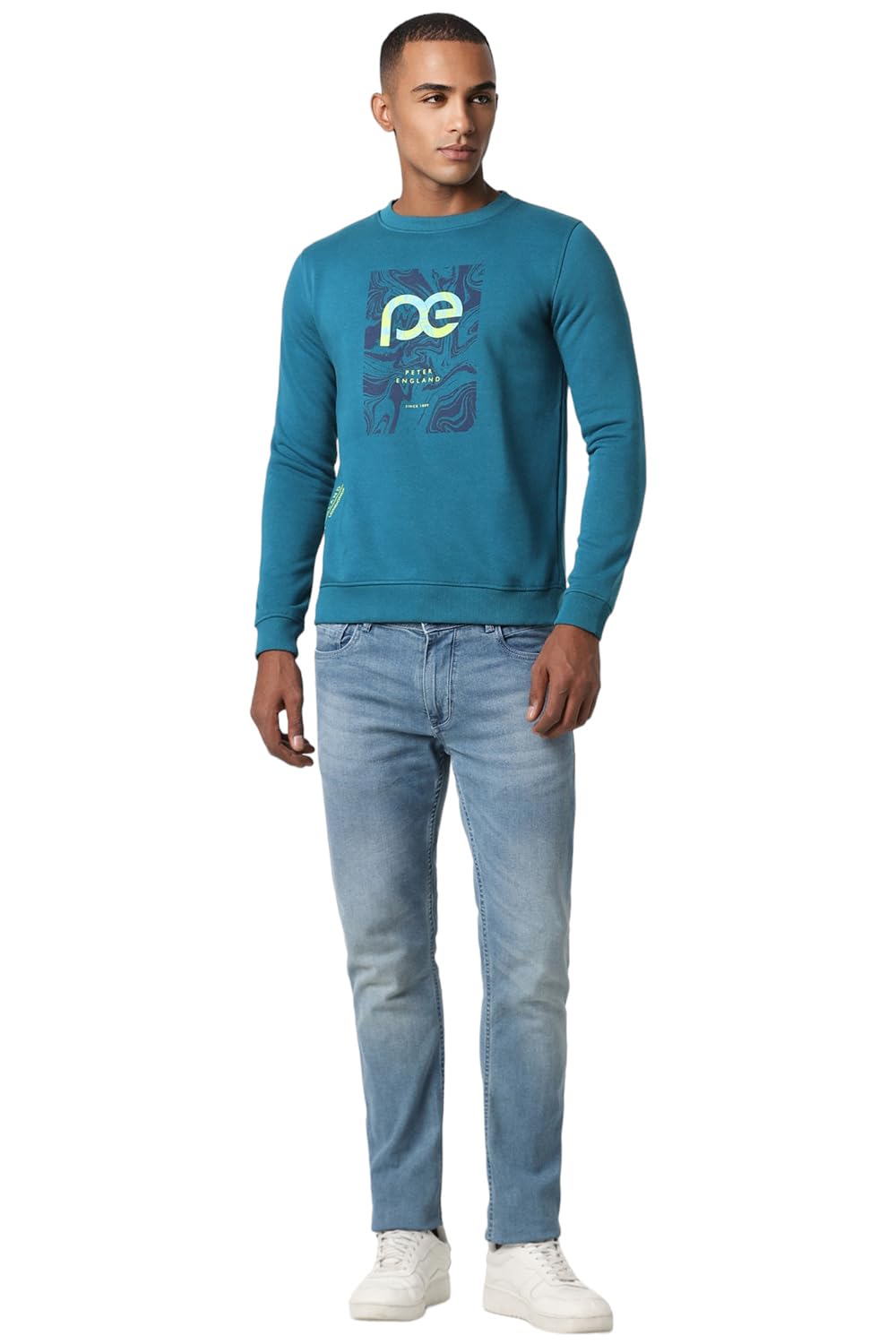 Beat the chills with this Blue Print sweatshirt from Peter England for a perfect look.