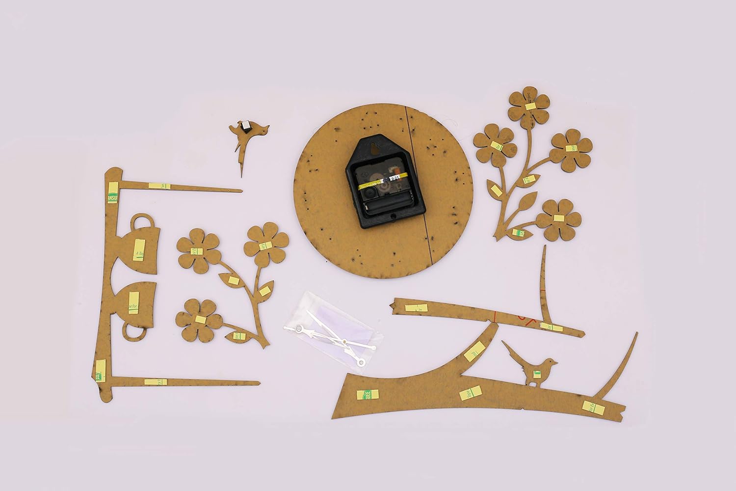 The clock by invision1 seller has interesting and unique design. The parts were easy enough to put together in the clock. The needles have to be stabilised though and that can be tricky sometimes.The rest of it would be stuck – you get only one chance – so do it right! Some way to ensure it is straight would have been good, better ask someone to help you straighten it before you press it and stick it permanently. I had the nail in the wall in place and I proceeded with hanging the clock, aligning the branch and sticking it, followed by the jhoola. That’s when I realised jhoola wasn’t straight. Wish there were some right guidelines or something with this. I tried to remove and stick again but it was peeling off the wall paint, so never mind. I got it for 700/- so that’s expensive. Hope you get better offer.Overall, a good purchase. It’s been with me for around 9 months now. Good performance, nothing has broken or anything. I like it.