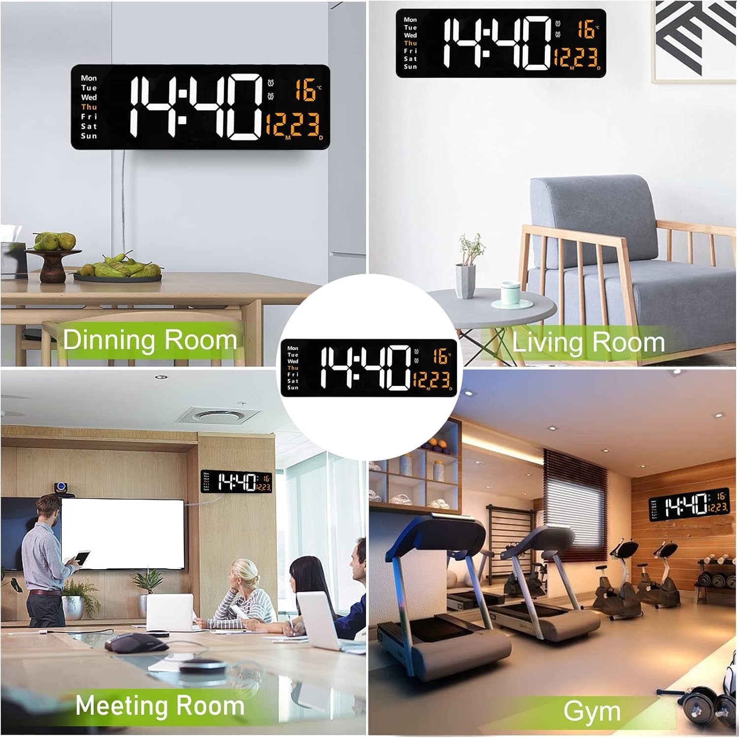 Plastic Digital Wall Clock Large Display, 16.2 Inch Large Wall Clocks, Led Digital Clock with Remote Control/Automatic Brightness Dimmer Big Clock with Date Week Temperature (White-Orange)