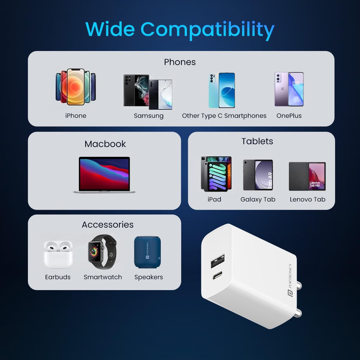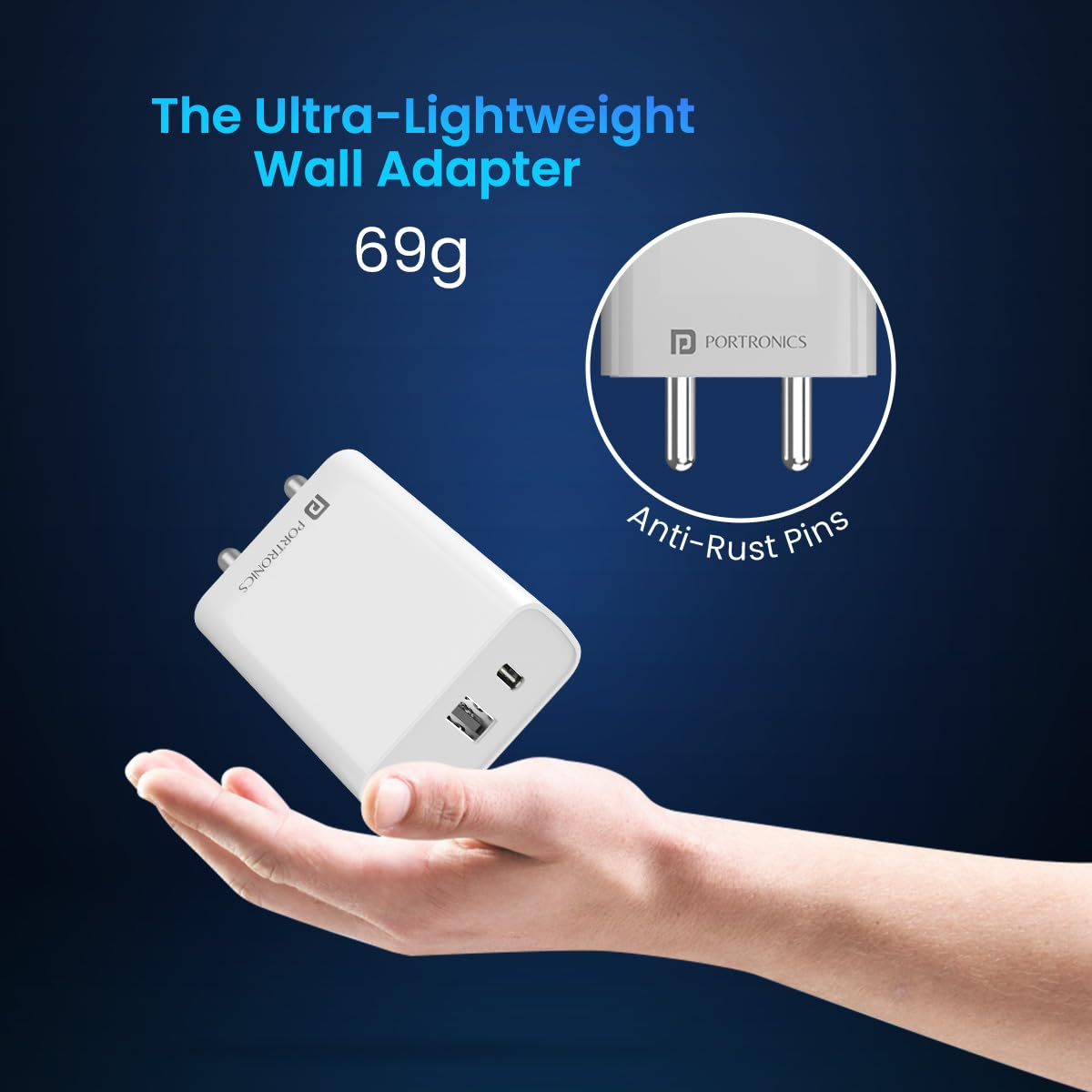 γPPS SAFEγ: The Portronics adapter has PPS (Programmable Power Supply) the type C charger modifies voltage and current by feeding maximum power based on a device’s charging status.