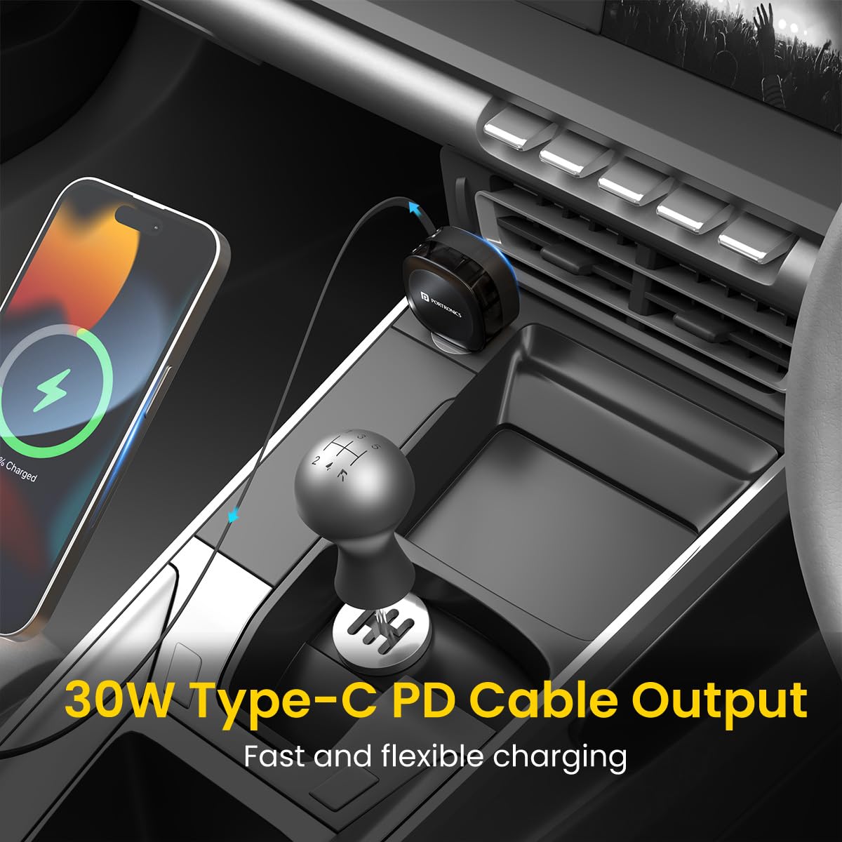 Super Add-on.I removed the useless wireless phone charging unit in my Hyundai Exter Pro to create a bigger tray and added the Portronics Car Power Flexo in the now available 12V point. Now I can charge my phone faster than what the other installed C charging port. Now I have a bigger tray without wire clutter as charging cord is retractable.