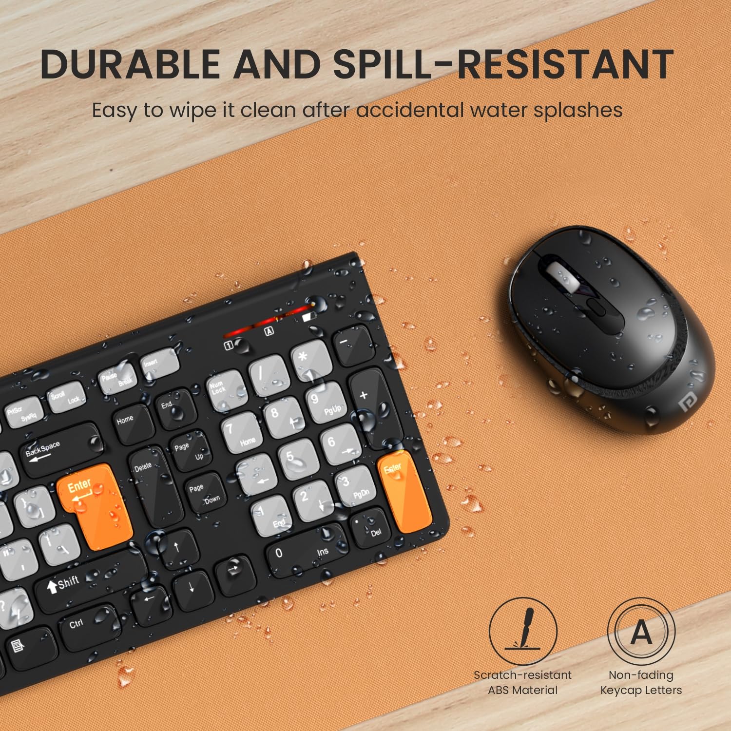 Overall good product with some cons.Pros1. Light weight2. Smooth and noiseless typing experience.3. Seamless connectivity.4. Key color combination orange+grey+black looks good.5. DPI function button works perfectly.Cons1. No button to power off keyboard2. Keyboard wobbles from left end while typing even on plane surface.3. Indicator lights not working in my device.4. Have different battery types AA & AAA for mouse & keyboard.5. Batteries not included in box.