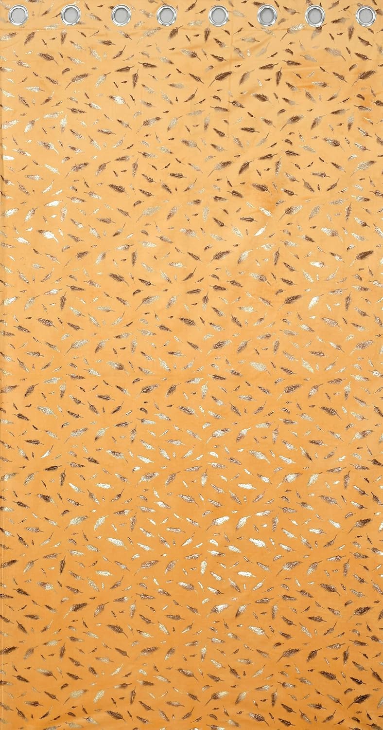 Premium Foil Pankh Print Velvet Fabric Room Darkening Curtains for Long Door 8 Feet, Pack of 1, Gold