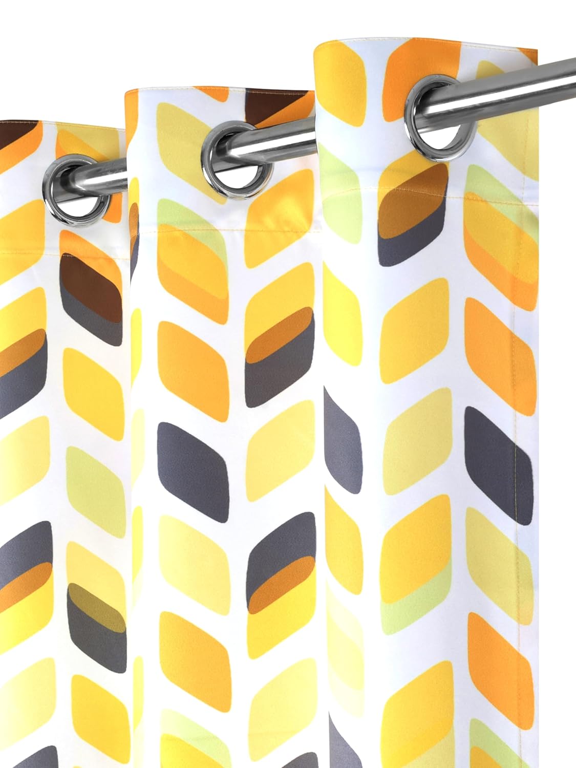Printed 2 Piece Polyester Eyelets Blackout Opaque Curtains with Tie Back, for Bedroom and Living Room (Yellow Petals, Window (5 Feet))