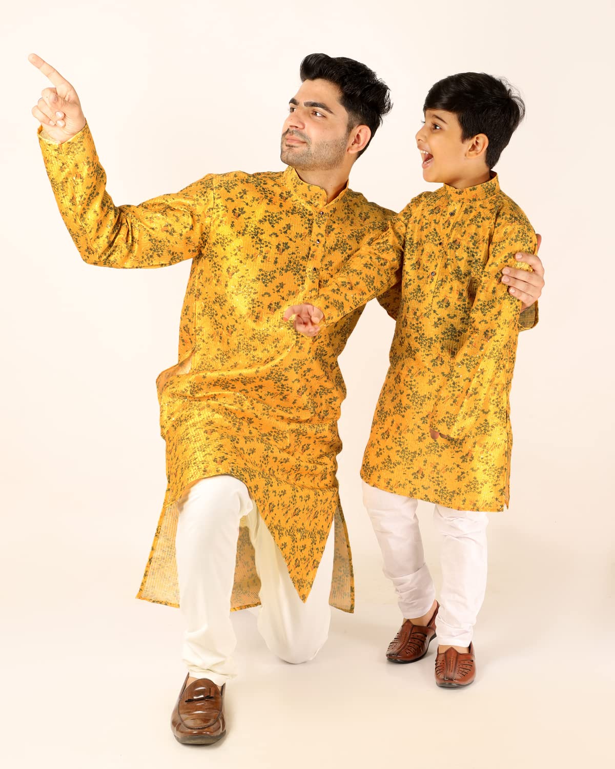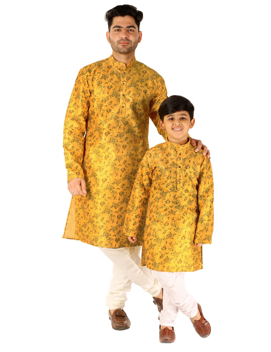 Pro-Ethic Style Developer Men’s & Boys Silk Printed Father Son Matching Ethnic Wear Kurta Pyjama Set (Combo) B-107