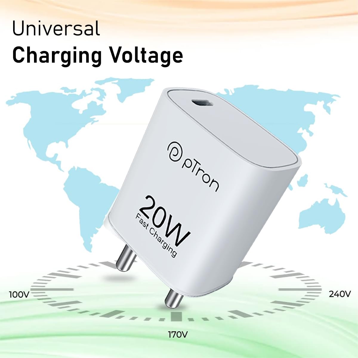pTron Volta FC18 smart USB Wall Charger comes with 20W Super Fast PD (Power Delivery) Compatible Charging | Made in India Power Adapter Compatible with iPhones.