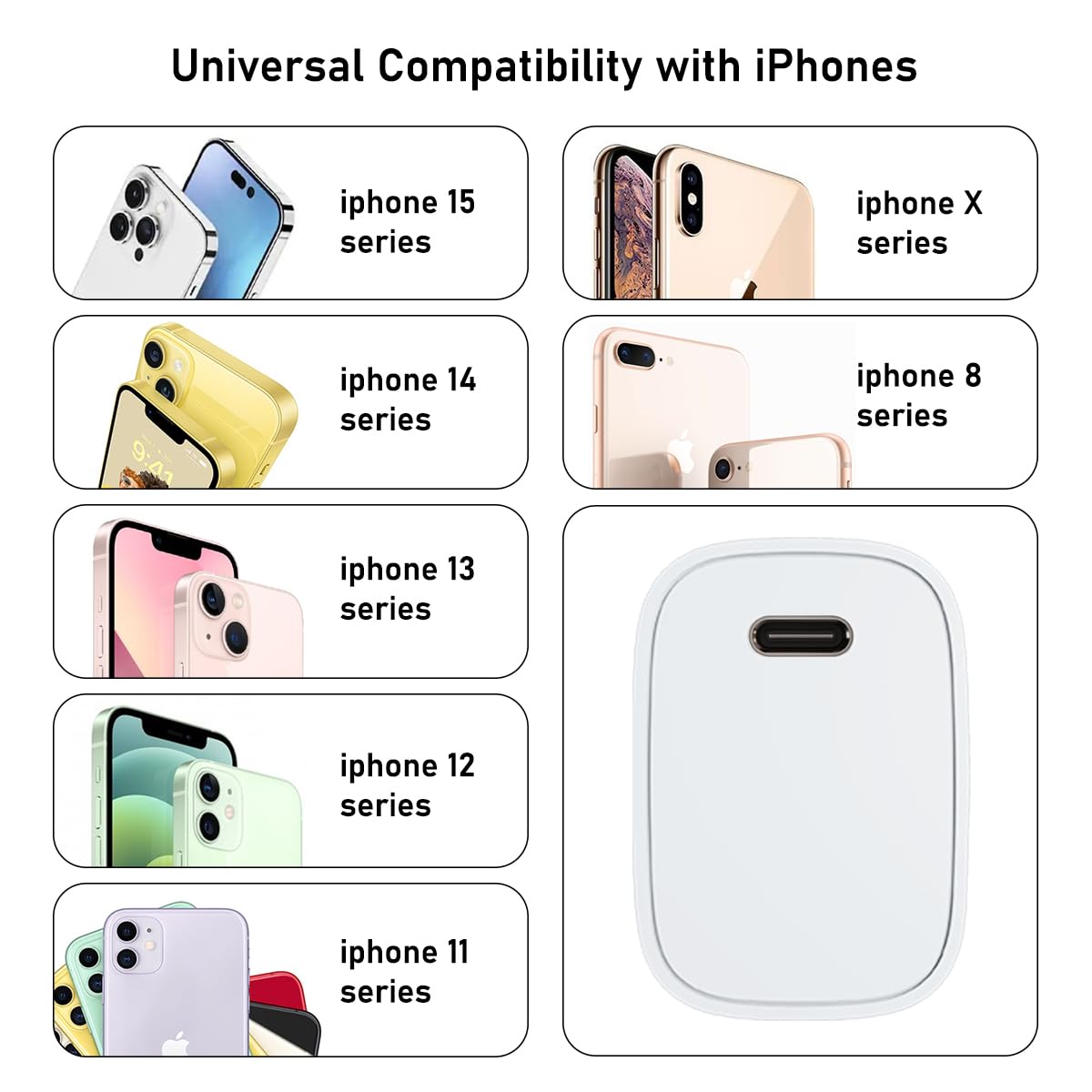 20W Single Port PD Charger is Compatible with iPhone 15,14,13,12,11,X & 8 Models | 3 Times Faster Charging | A compatible 3A Charging cable Must be Used with this Charger to Experience Fast Charging.
