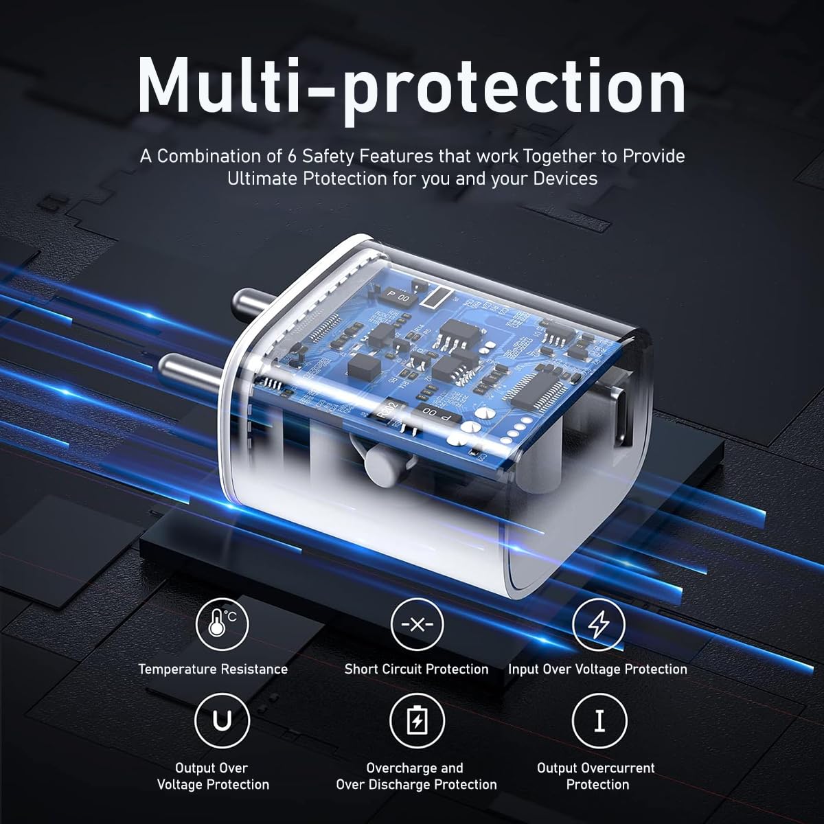 Multi-layer Chipset Protection – The charger comes with multi-layer chipset protection that gives protection against short circuits, over-voltage.