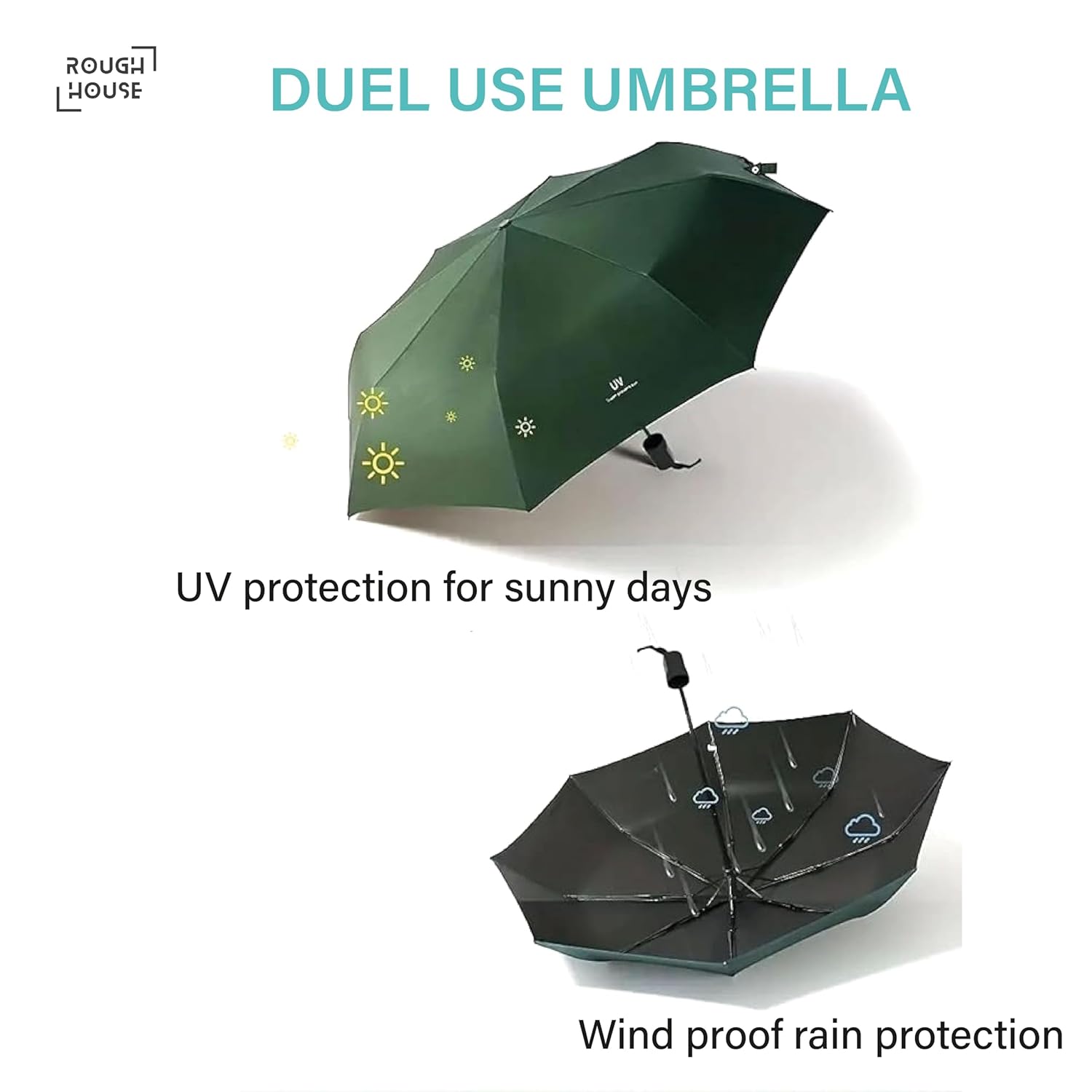 8 reviews for Roughhouse UV Umbrella for Sun & Rain – Auto Open/Close | Windproof | Travel-Friendly 3-Fold Design | SPF 50+ Coated | Big Canopy, Easy to Carry