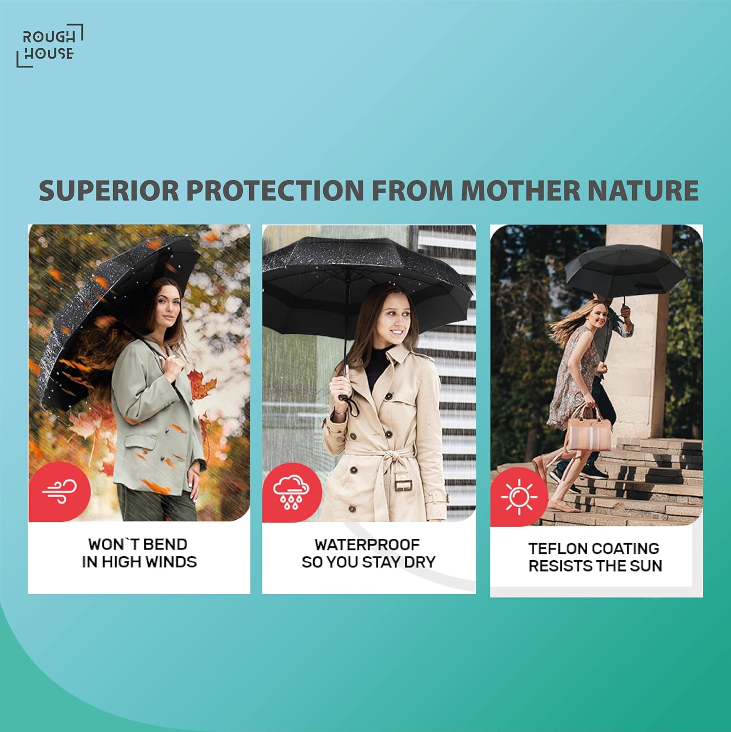 I bought the Roughhouse UV Protection Blue Umbrella a few weeks ago, and I have mixed feelings about it.On the plus side, it’s lightweight and easy to carry around, which is great for daily use. The automatic open-close feature is convenient, and the UV protection actually makes a difference when you’re out in the sun for long periods. It also looks stylish, which is a nice bonus.However, the durability is a bit questionable. The frame feels a little flimsy, and I wouldn’t trust it in strong winds. While it works fine for light rain, I feel like it might not last very long with frequent use.Overall, it’s decent for the price, especially if you need an umbrella mainly for sun protection or light rain. But if you’re looking for something really sturdy, you might want to consider other options.