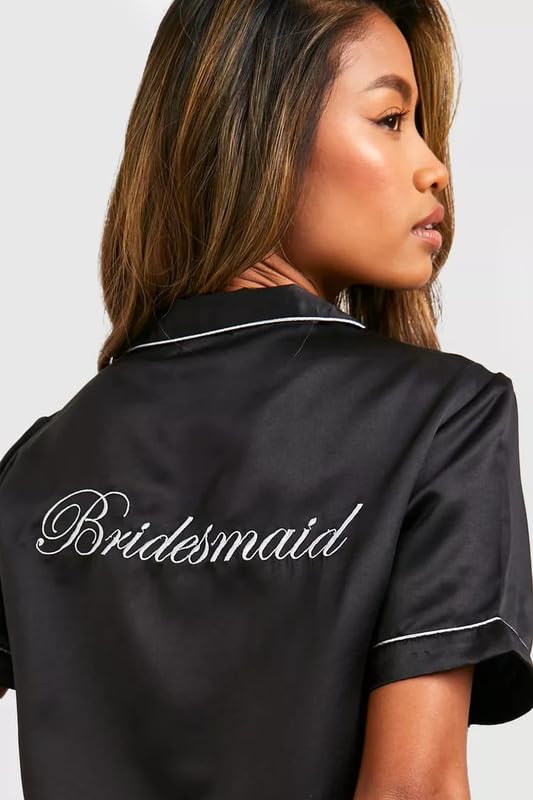 The Bride and Bridesmaid Printed Short Pajama Sets are crafted from a luxurious Satin fabric. This combination makes the pajamas soft, lightweight, breathable, and skin-friendly. Designed for her, these matching sets provide a sweet and comfortable experience to enjoy sleeping time. The set includes a shirt and pajama with a contrast notch collar, a left chest pocket, and a button-down design, making it a classic and elegant choice for any occasion, whether for sleeping, casual wear, or lounging around the house. The short pajama feature an elastic waistline that accommodates all body types, ensuring a relaxed and comfortable fit. Ideal for sleepwear, these pajamas make for perfect gifts on occasions like weddings, Valentine’s Day, Christmas, anniversaries, or birthdays, making them an excellent gift choice for lovers or friends.
