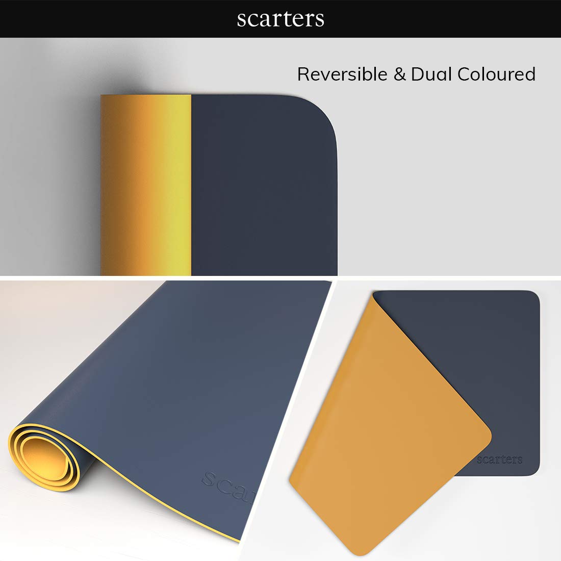The Scarters Reversible Deskspread is a must-have for anyone who works from home or loves gaming. With its spacious 90 x 45 cm surface, itâs got plenty of room for my laptop, keyboard, mouse, and all my other essentials. Plus, the cool dual-tone design in orange and black adds a stylish touch that I can switch up whenever I want.This mat is made from vegan PU leather that feels tough and has a smooth surface. Itâs great for precise mouse movements, whether Iâm working or gaming. The anti-slip base keeps it firmly in place, and itâs easy to clean, splash-proof, and super comfortable for long desk sessions. Itâs a great upgrade for any workspace!