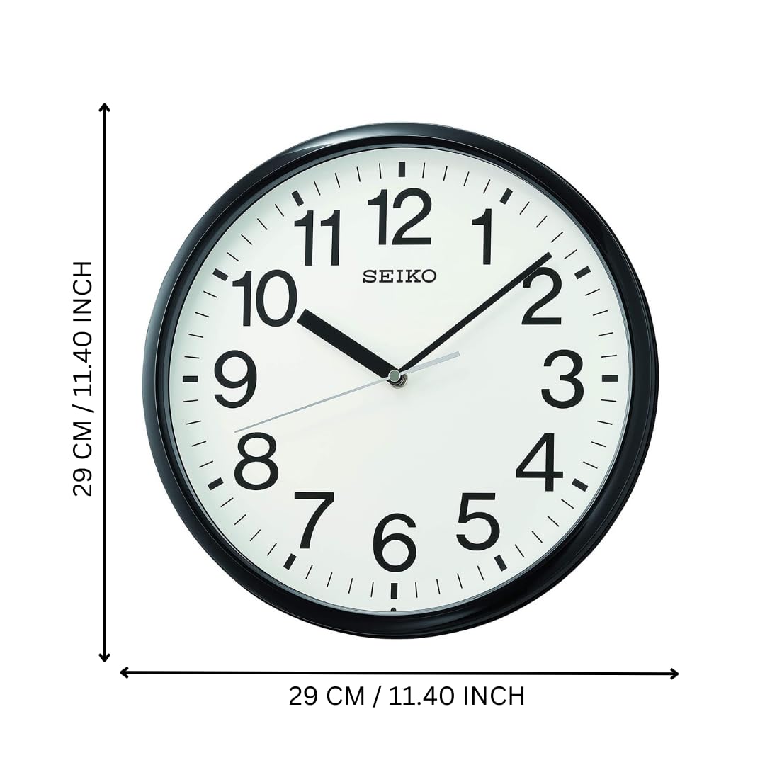 Seiko Elegant Round Black Plastic Analog Home Decor Wall Clock with Sweep Movement (Size: 29 x 4 x 29 CM | Weight: 660 gram | Color: Black)