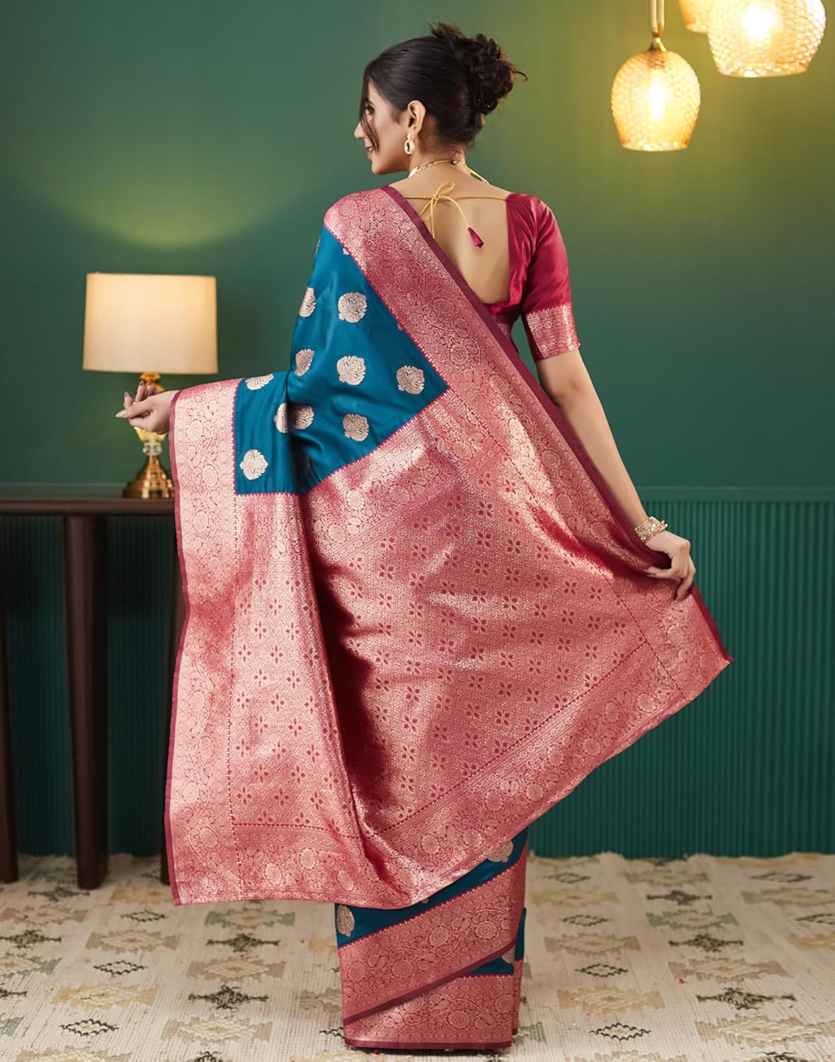 SIRIL Women’s Banarasi Silk Blend Saree | Kanjivaram Jacquard Weaving Sari With Unstitched Blouse Piece