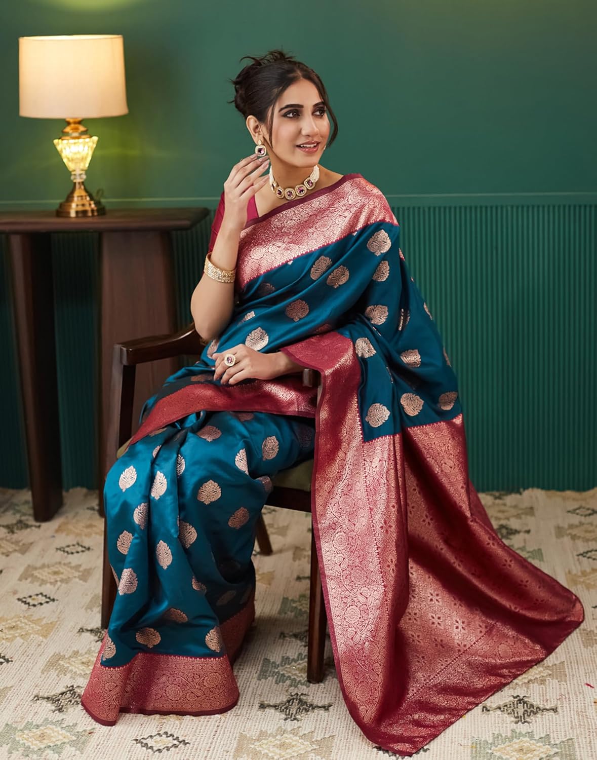1 review for SIRIL Women’s Banarasi Silk Blend Saree | Kanjivaram Jacquard Weaving Sari With Unstitched Blouse Piece