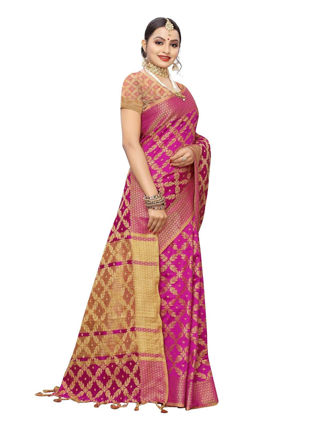 Monjolika Fashion Women's Banarasi Silk Saree With Blouse Piece.