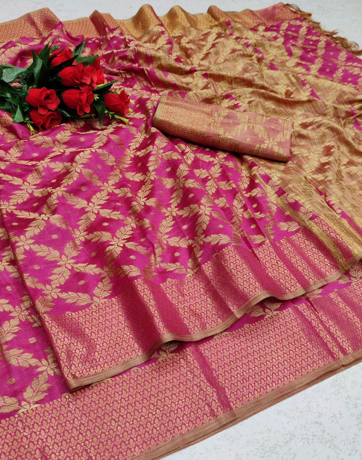 Yashika Women's Zari Woven Cotton Silk Jacquard Saree With Unstitched Blouse Material