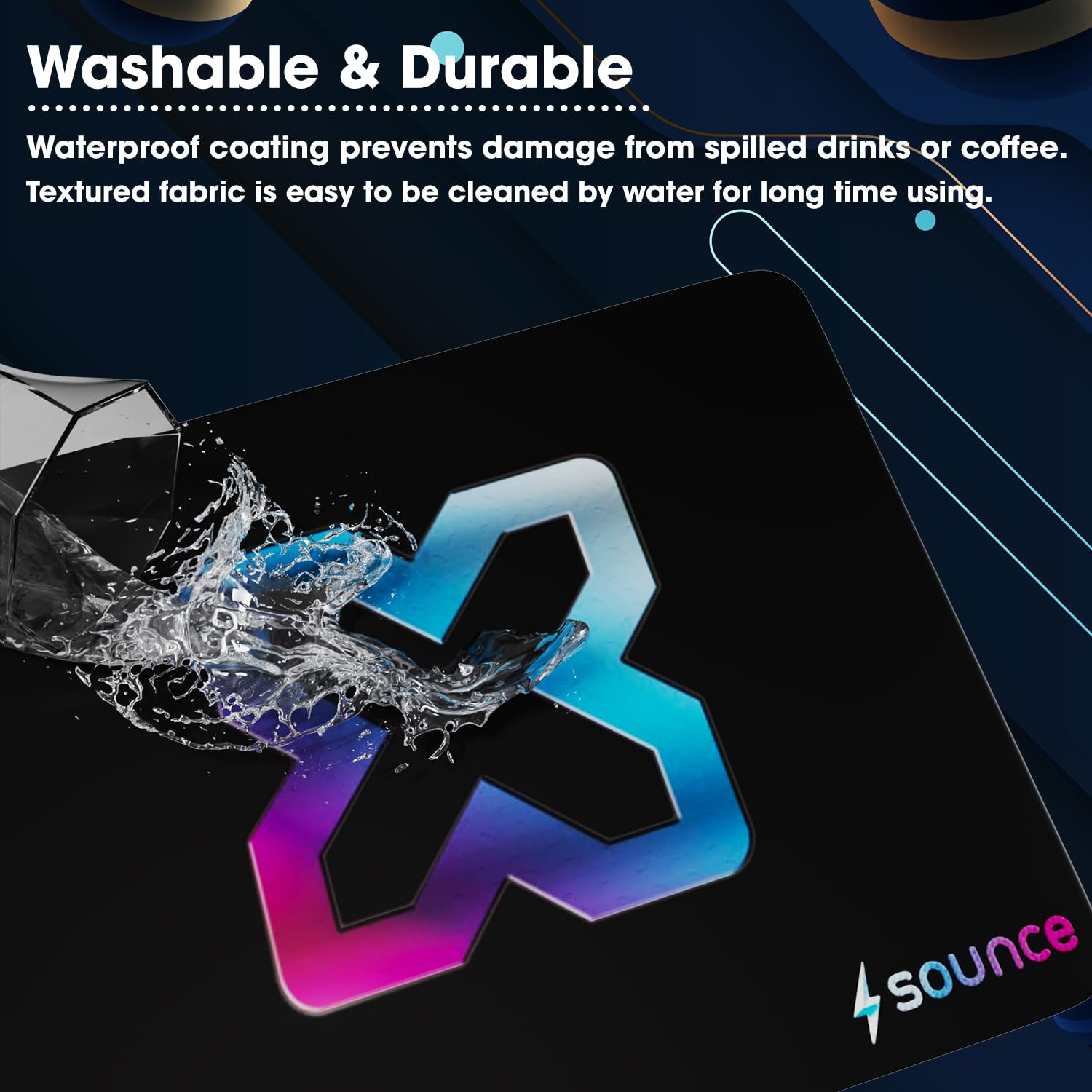 mic Design】 Sounce ergonomic mouse pad is thoughtfully designed to provide optimal comfort and support during extended mouse usage. Its ergonomic shape and smooth surface help reduce strain on the wrist and promote a more natural hand position.【Non-Slip and Anti-Skid】 This mouse pad features a non-slip and anti-skid base that keeps it firmly in place, preventing unwanted movement or sliding during intense gaming sessions or work tasks. The secure grip ensures stable and precise mouse movements.【Waterproof and Splash-Proof】 The mouse pad is designed with a waterproof and splash-proof surface, protecting it from accidental spills or liquid damage. This feature ensures easy cleaning and maintenance, allowing you to quickly wipe away any spills or stains.【Precision Tracking】 With its precision tracking surface, the mouse pad offers excellent accuracy and responsiveness. It enhances the performance of optical or laser mice, providing smooth and precise cursor movements for enhanced productivity and gaming experience.【Durable Construction】 Built to withstand regular use. The high-quality materials and meticulous craftsmanship ensure that it can endure heavy daily use without compromising its functionality or appearance. Suitable for gaming, computer work, laptop use, and both home and office environments.