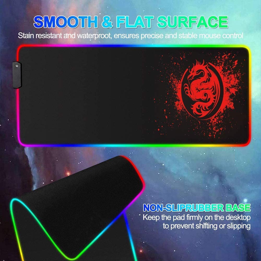 Speed RGB Gaming Mouse Pad, Soft Glowing 14 LED Modes, Gaming Desk Keyboard Pad, Mouse Mat, Non-Slip Rubber Base – 78×30 cm – Red Dragon