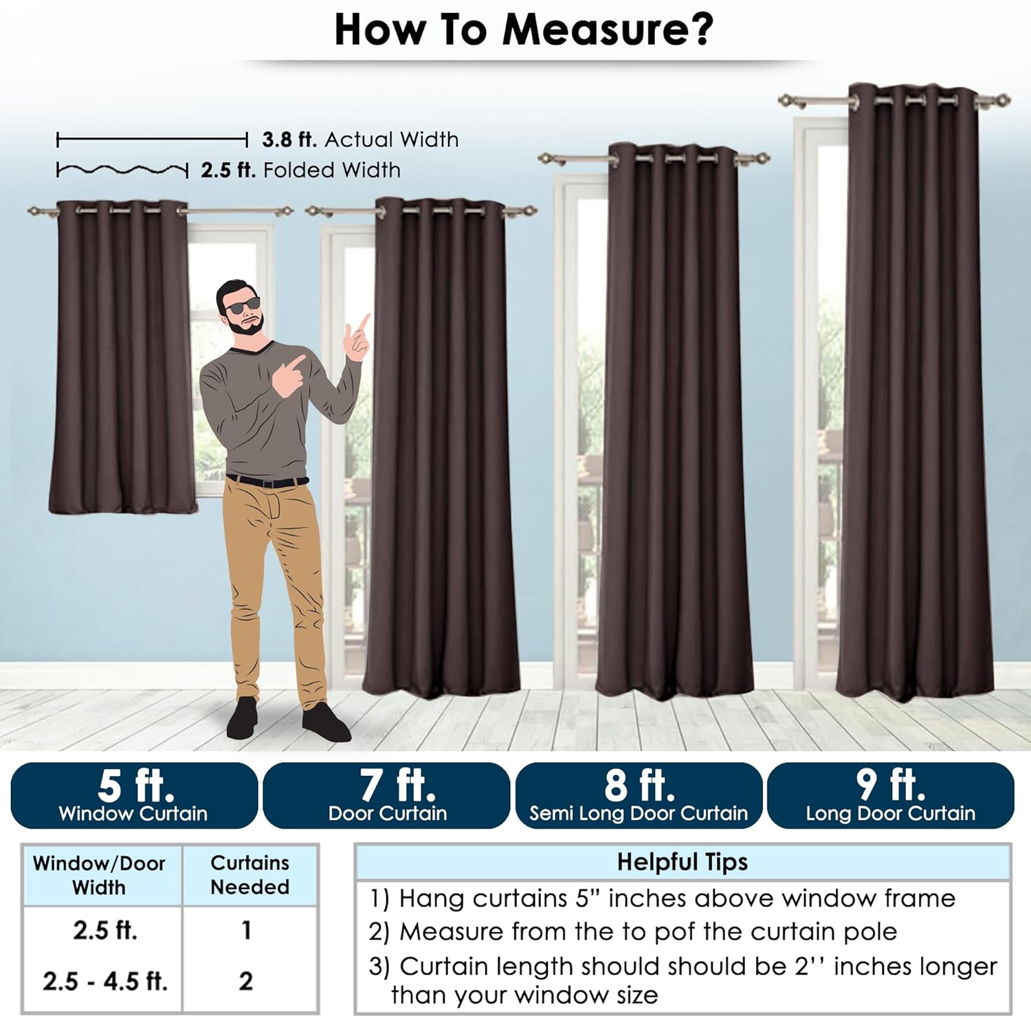 Story@Home Blackout Window Curtains 5 Feet Long Set of 1 | Plain Print | 90% Room Darkening Curtain | Thermal Insulated | Curtains for Living Room | (116 x 152 cm, Dark Brown) | Perfect for Home Decor