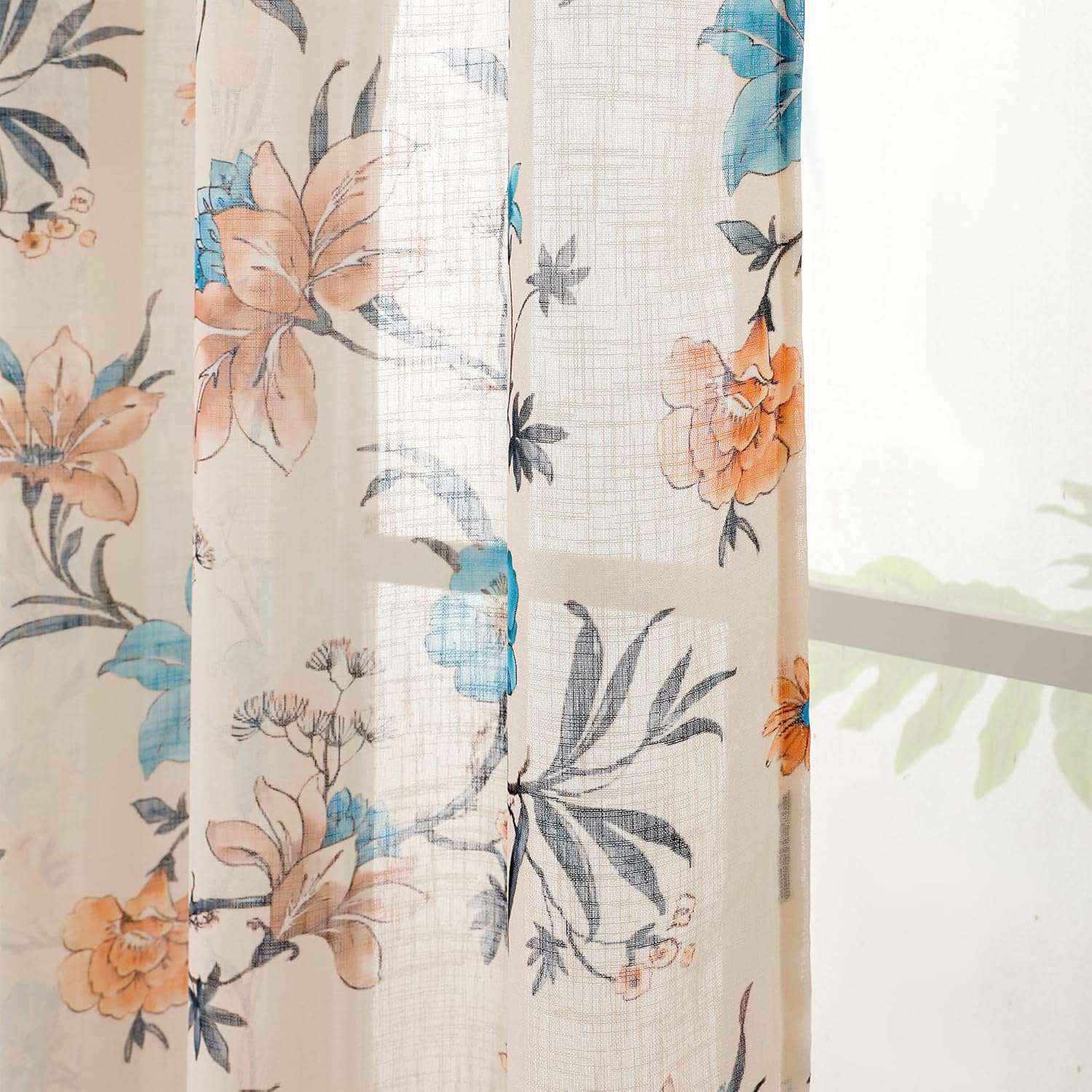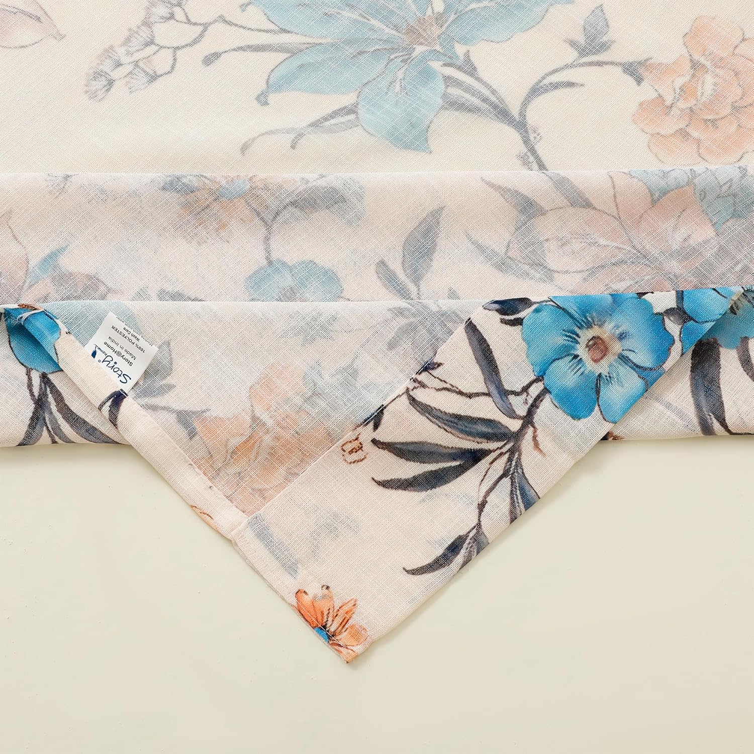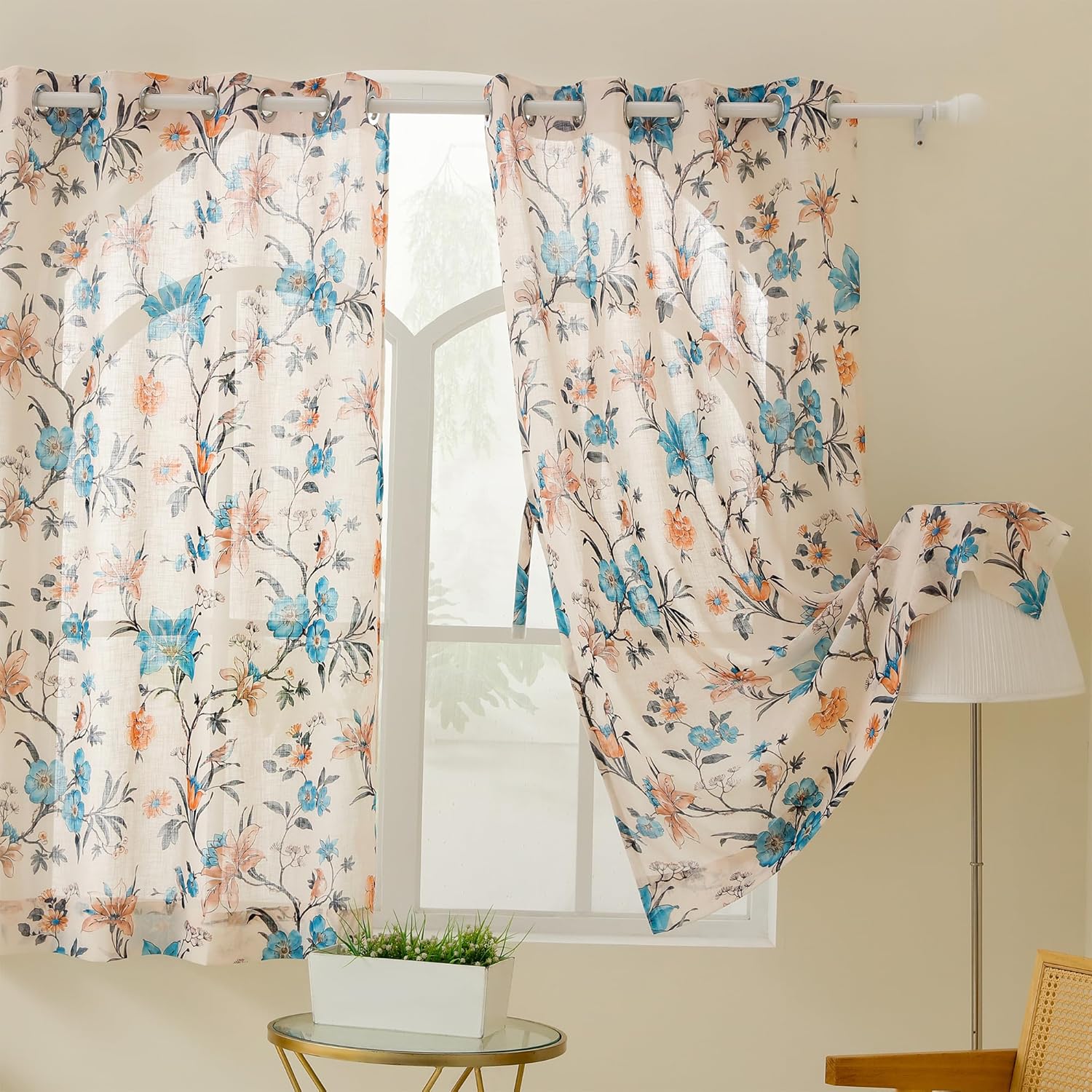 Story@Home Window Curtains 5 Feet Long Set of 1 | Floral Printed | Semi Transparent Curtain | Net Curtains | Sheer Curtain for Living Room | (118 X 152 Cm, Cream & Blue) | Perfect for Home Decor