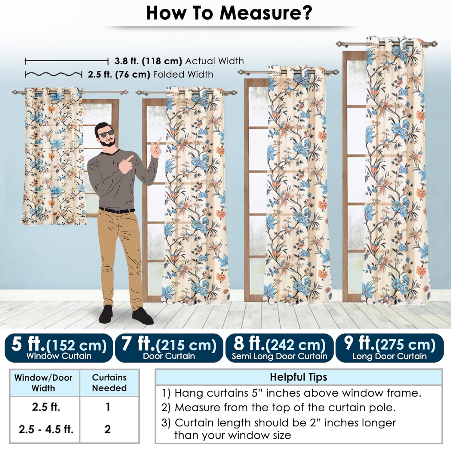 Package Contents: Pack of 1 AURUM Window Curtains | Dimension (Size): 118 x 152 cm or 46 x 60 inches, Pattern: Floral, Material : Polyester, Color : Cream & Blue | Story@Home sheer window curtains ideal curtains for bedroom, curtain window is allowing natural light to softly filter into your space, sheer curtains 5 feet is ideal use for home decor items, home decoration items for living room, room decoration items for bedroom, puja decoration items, office curtains for window & home furnishing