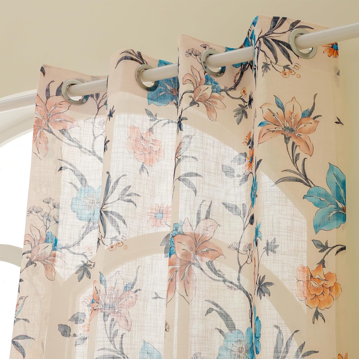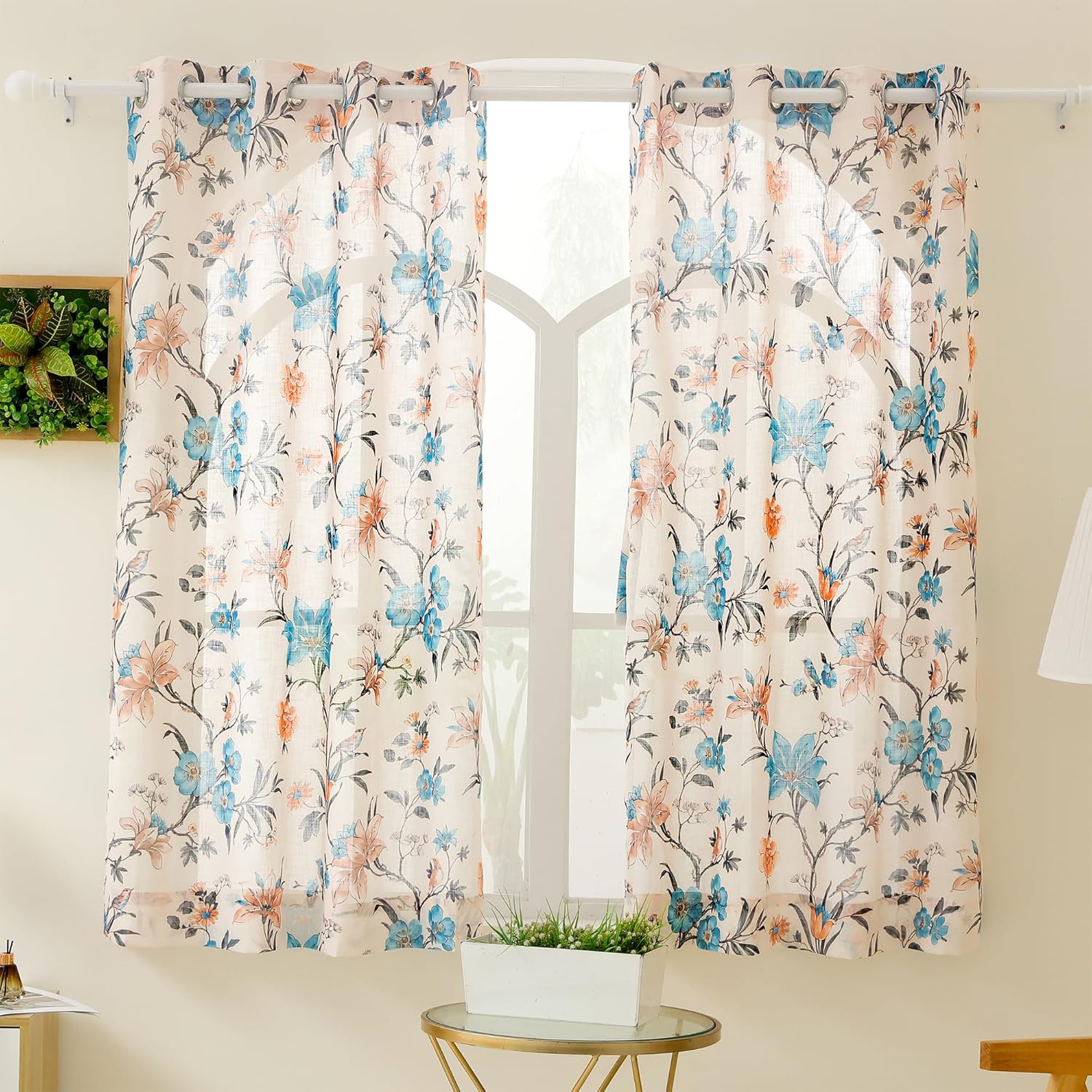 8 reviews for Story@Home Window Curtains 5 Feet Long Set of 1 | Floral Printed | Semi Transparent Curtain | Net Curtains | Sheer Curtain for Living Room | (118 X 152 Cm, Cream & Blue) | Perfect for Home Decor
