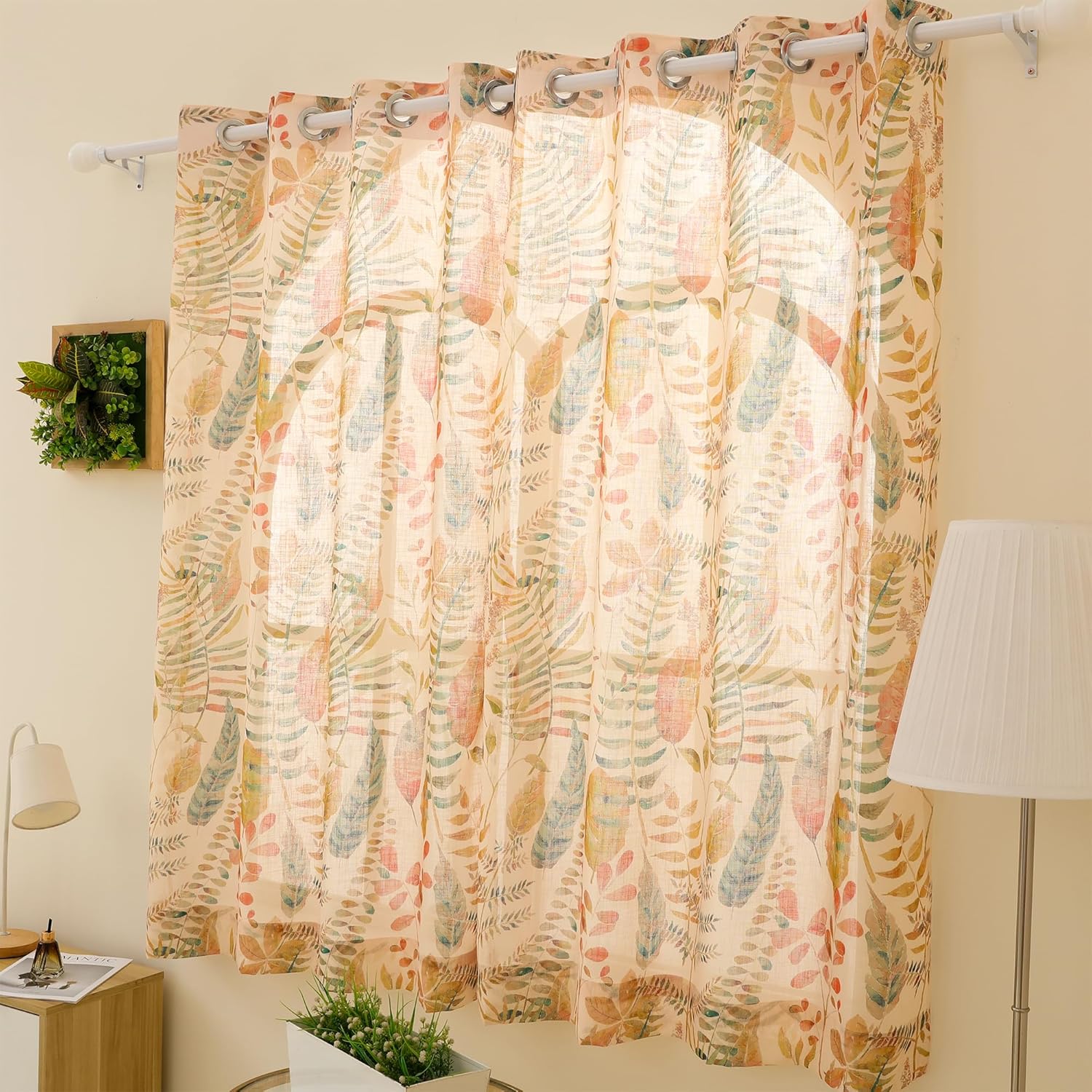 8 reviews for Story@Home Window Curtains 5 Feet Long Set of 1 | Leaf Printed | Semi Transparent Curtain | Net Curtains | Sheer Curtain for Living Room | (118 X 152 Cm, Cream & Orange) | Perfect for Home Decor