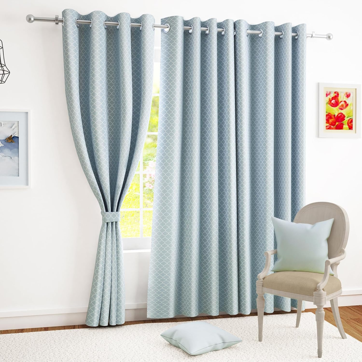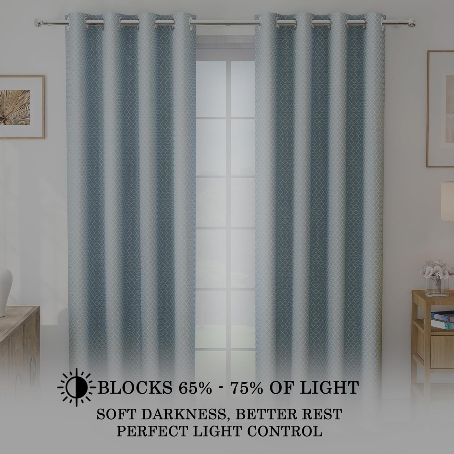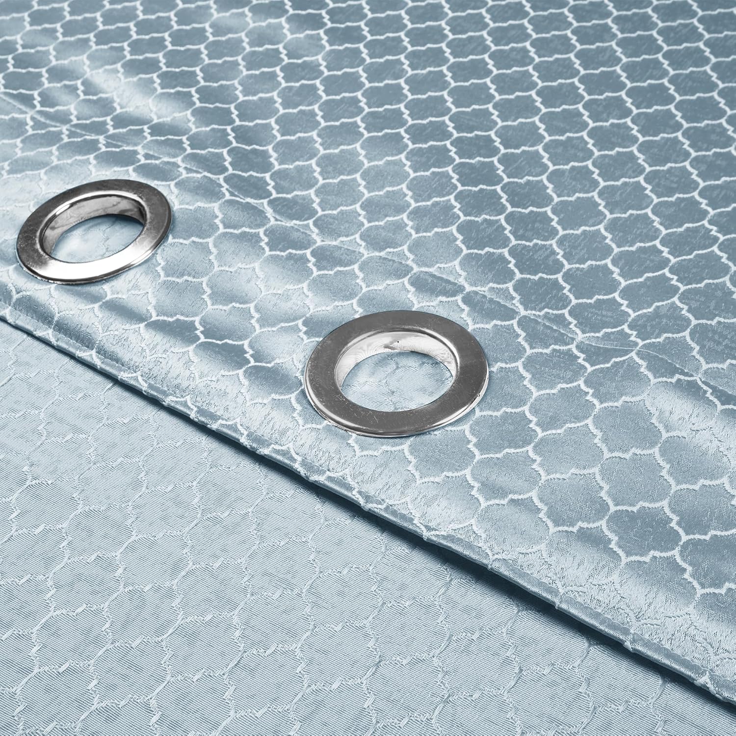 Supreme quality and silky appearance of fabric. Easy to maintain and wash with plastic removable eye holes. Transparency is completely opaque and fully room darkening (90%~ blackout – just as described).