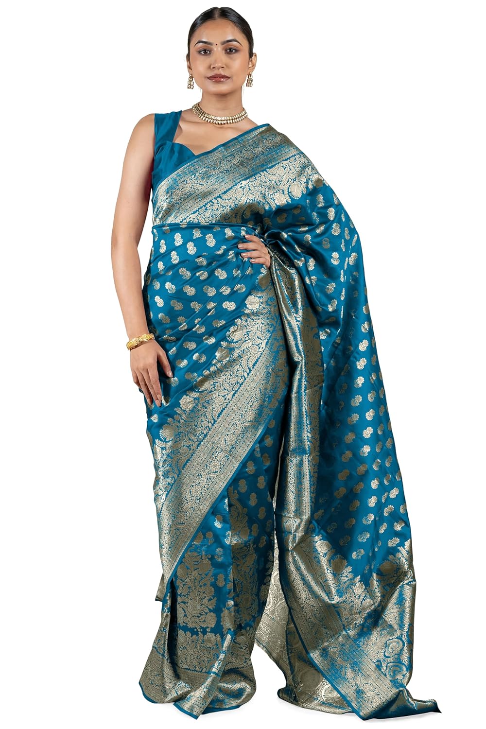 SUBHAM Women’s Silk Cotton Kanjivaram Soft Saree with Blouse Piece | Jacquard Design Banarasi Sarees | Golden Zari
