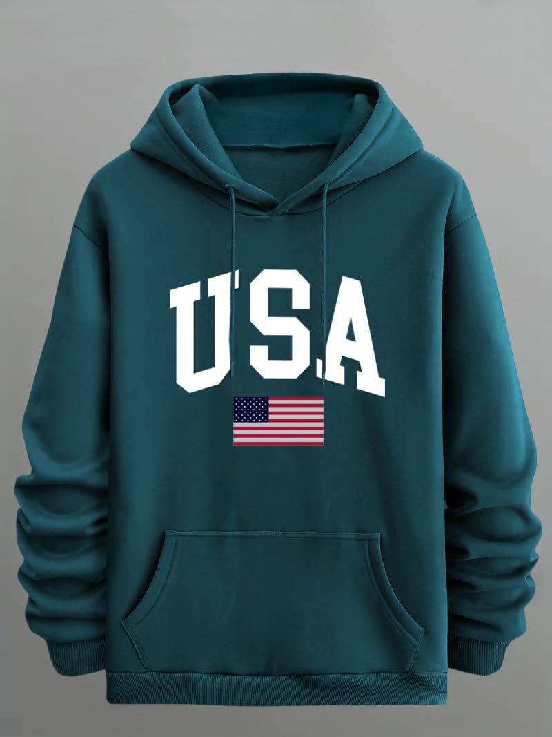 TagasMen’s Hoodie with USA Print, Kangaroo Pocket and Drawstring Detail || Sweatshirt for Mens || Men Hoodies || hoodis||(MH-8015)