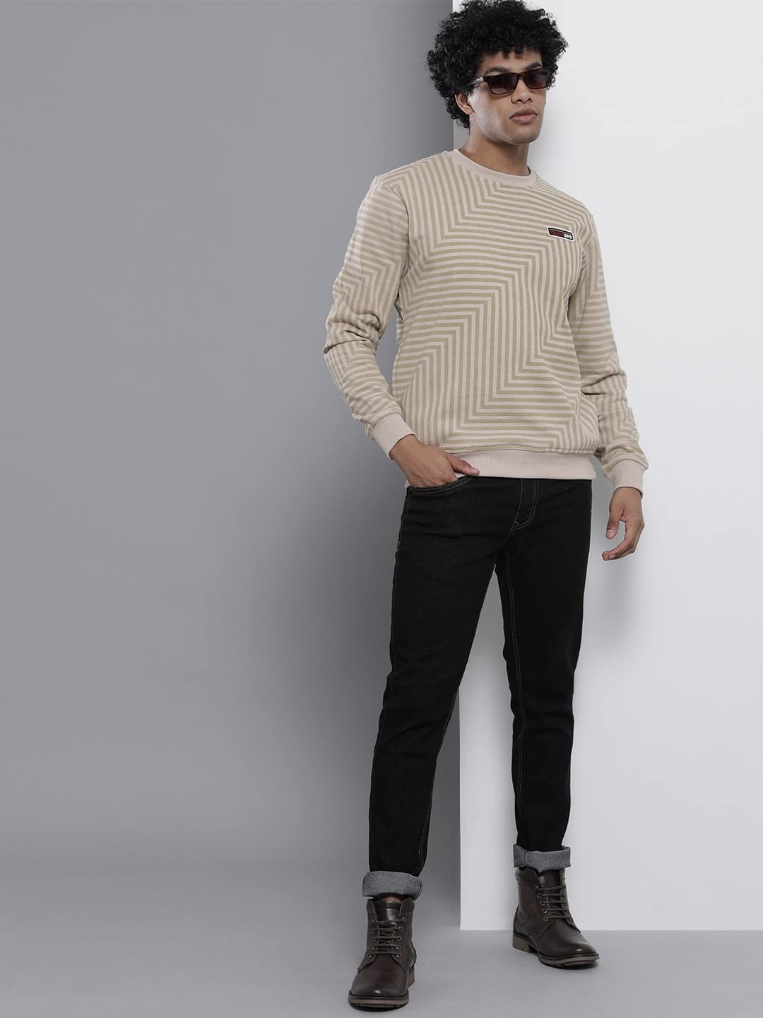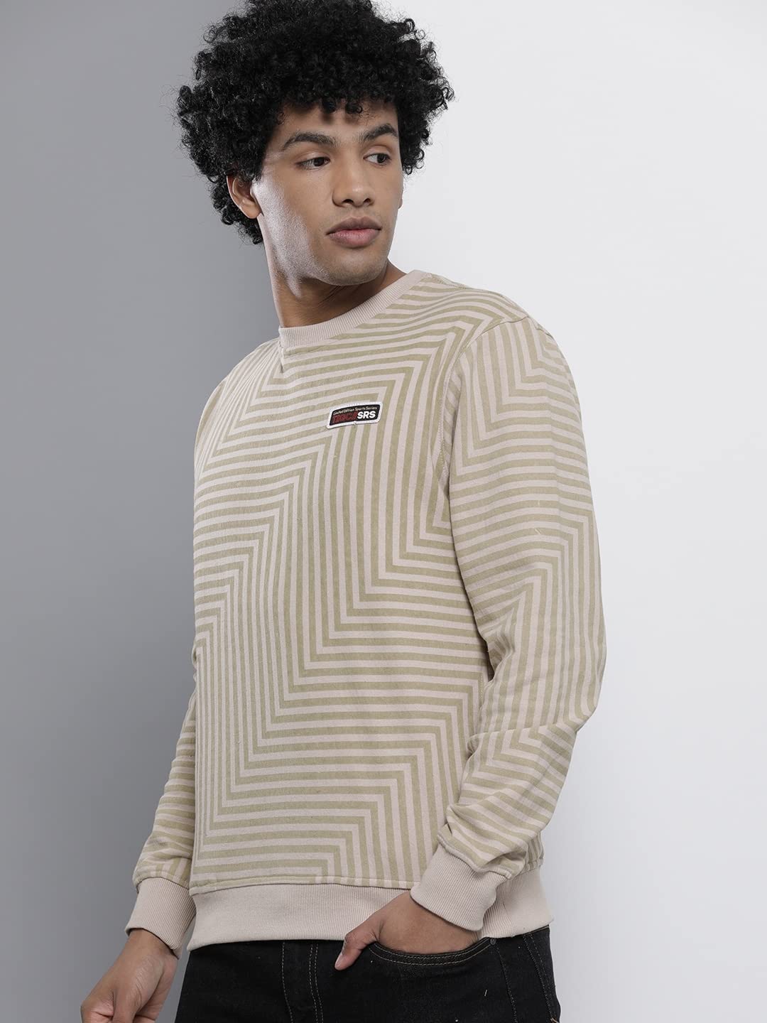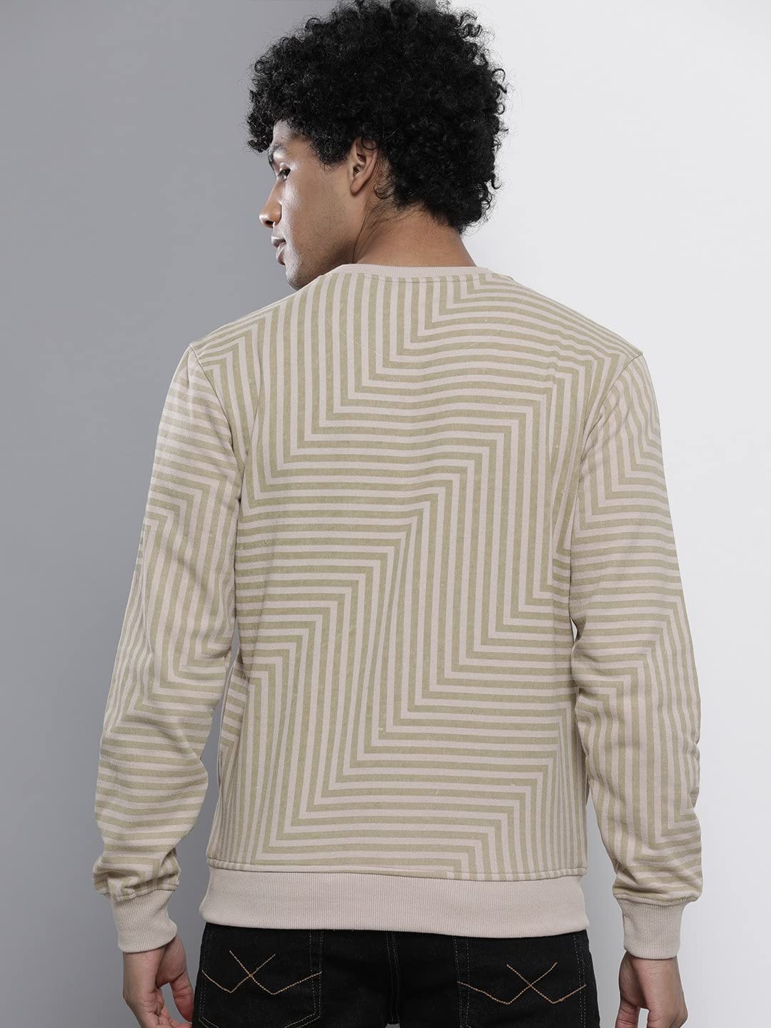 The Indian Garage Co Men Polyester Regular Fit Striped Crew Neck Overhead Sweatshirt