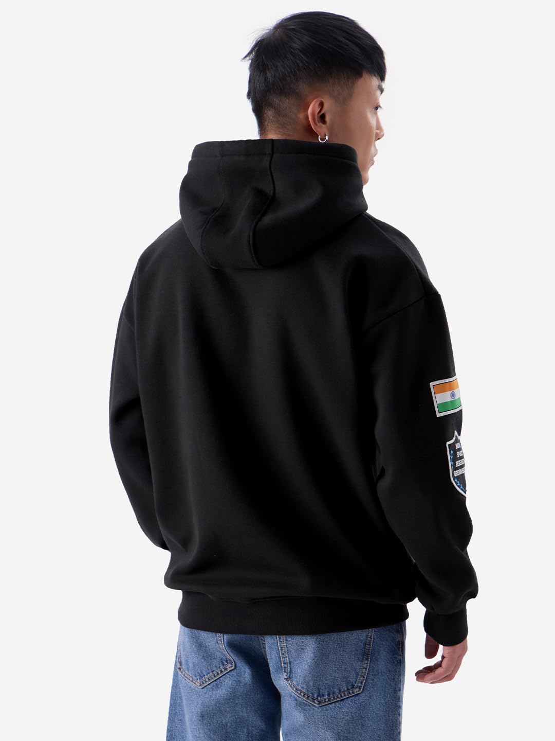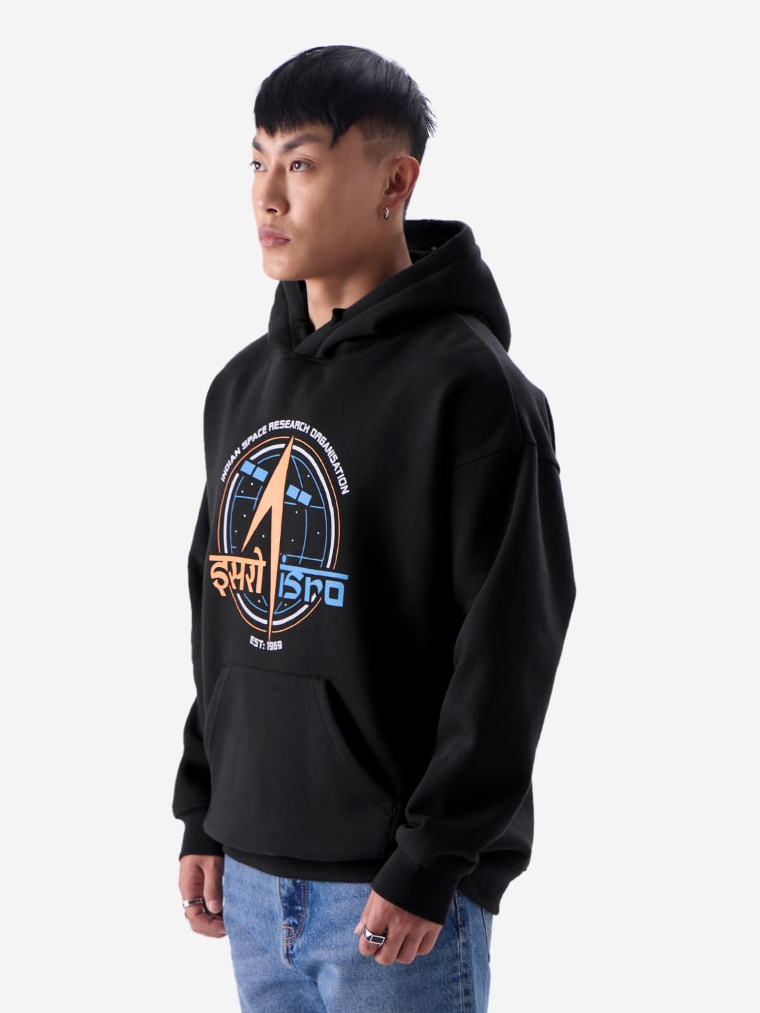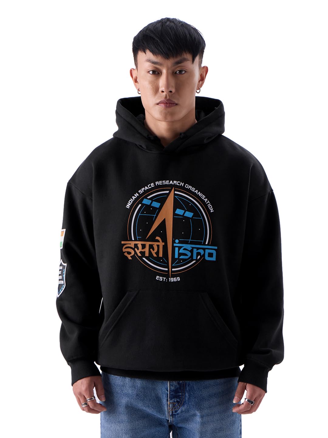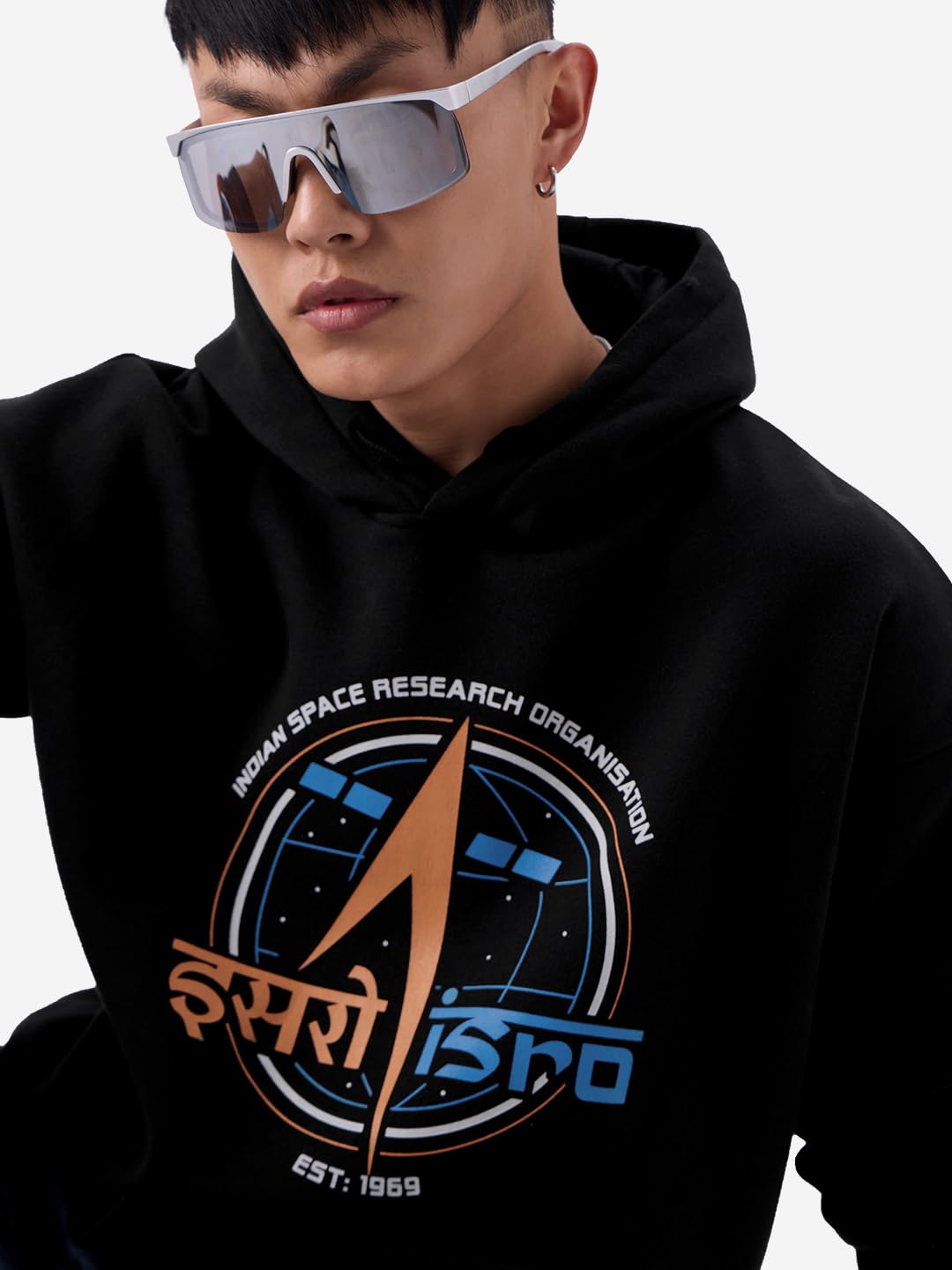 The Souled Store ISRO: Logo Men and Boys Long Sleeve Black Graphic Print Hooded Neck Oversized Fit Hoodies Oversized Hoodies Sweatshirts Pullovers Graphic Printed Design Block Hooded Warm Cozy