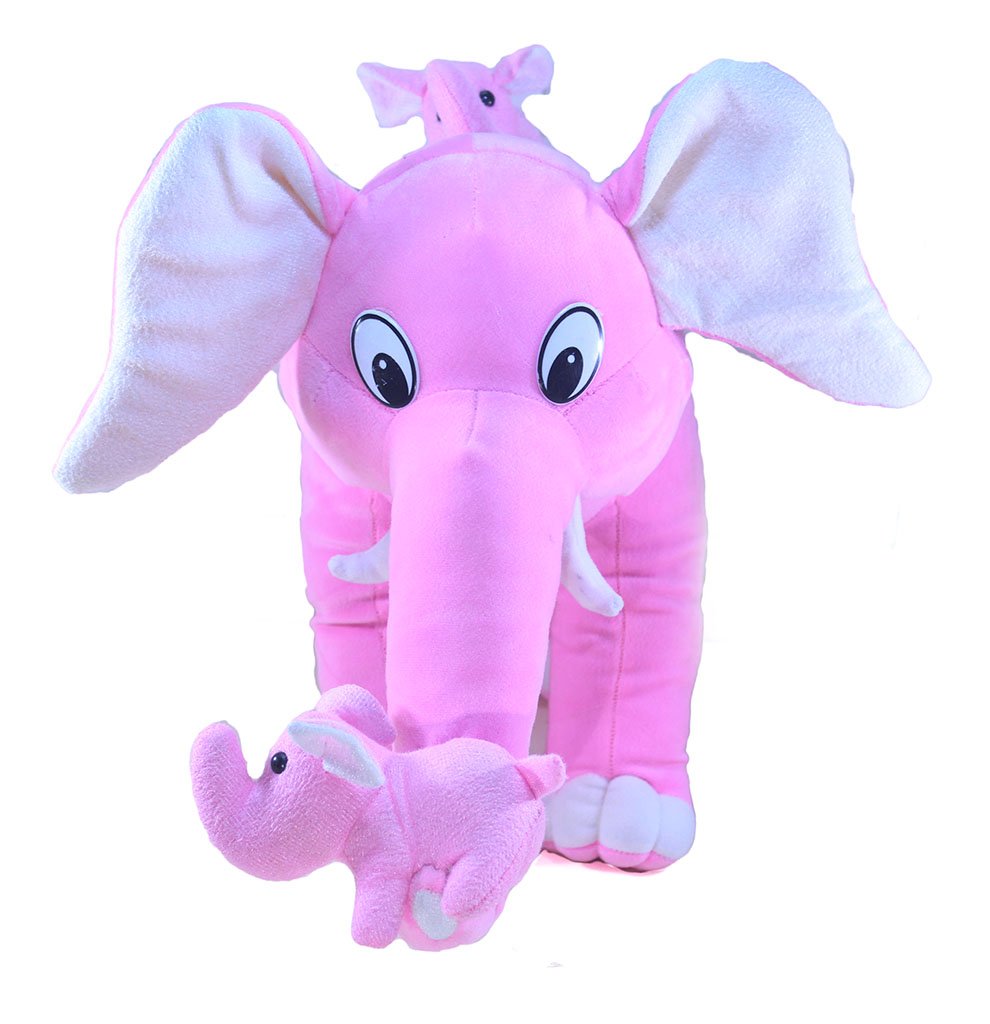 Tickles Mummy Elephant with Her Two Babies Stuffed Soft Plush Animal Toy for Kids Birthday Gifts (Color: Pink Size: 45 cm)