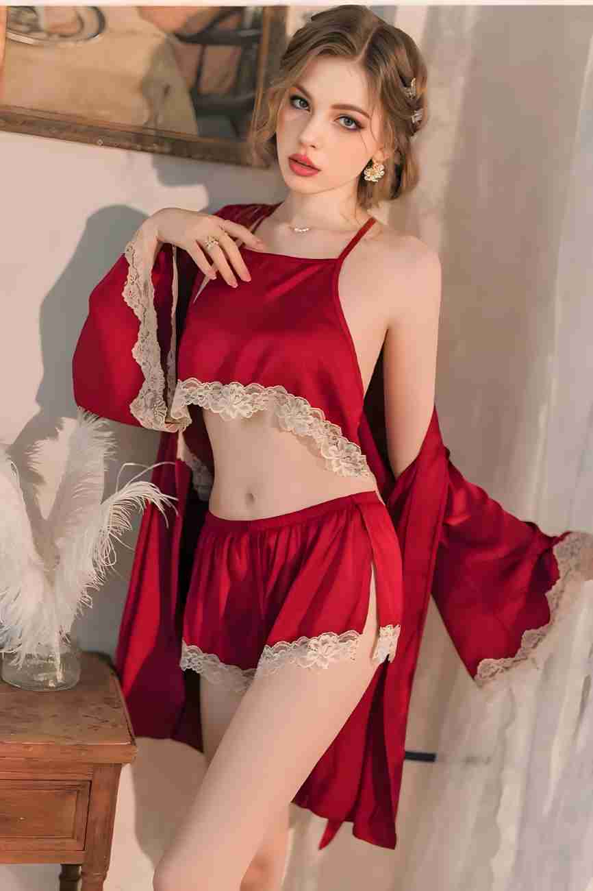 LIKSUN Pack of 3 Women Robe and Lingerie Set