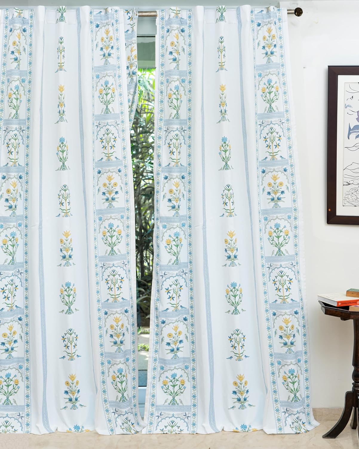 8 reviews for Tranquebar Curtain Co. Window Curtains 5 Feet, 60-65% Room Darkening, Blue Floral Print, Cotton Curtains for Window, Cotton Curtains 5 Feet Long Set of 2, BackTabs, Sashi (152 cm) – Set of 2
