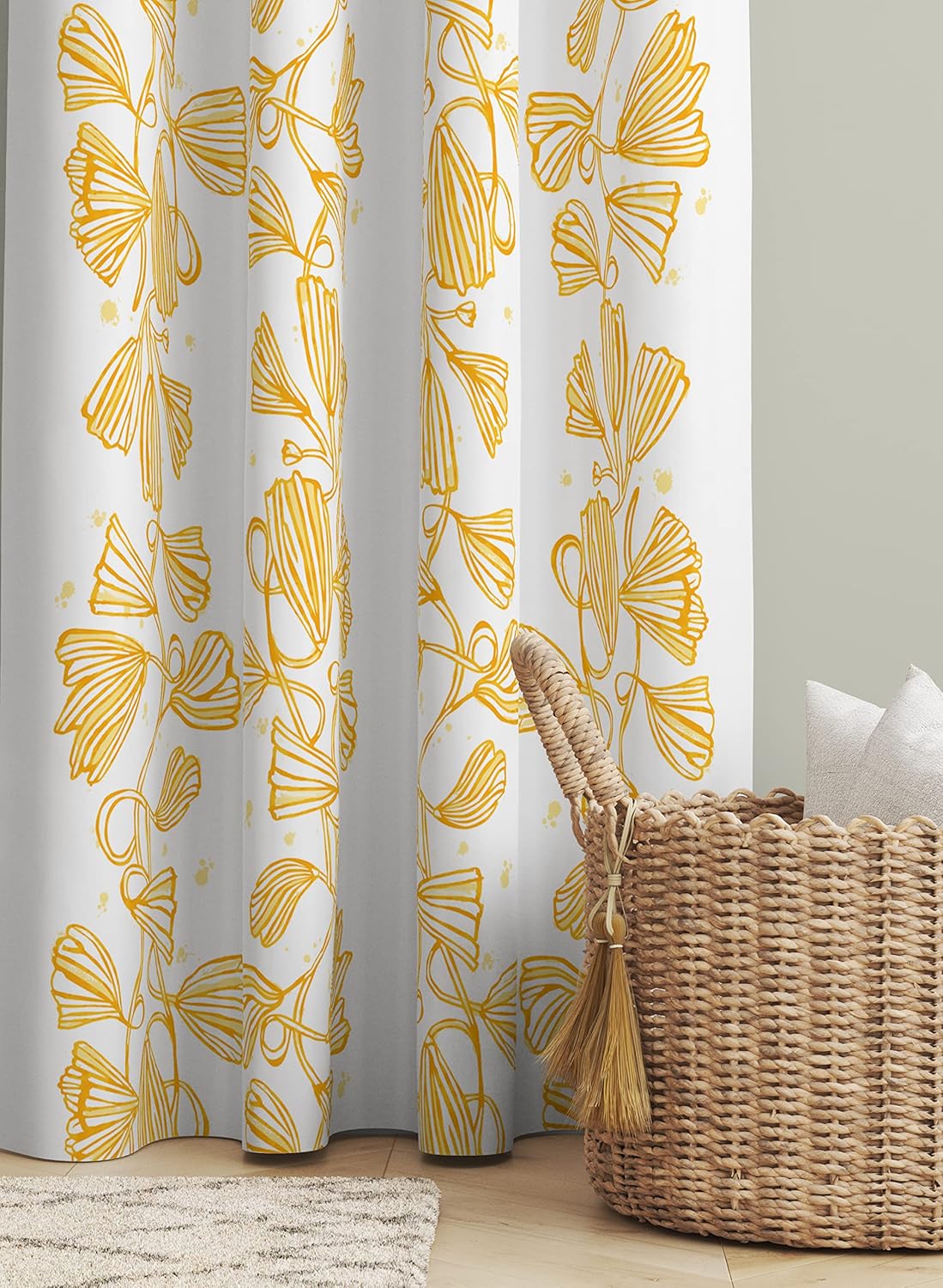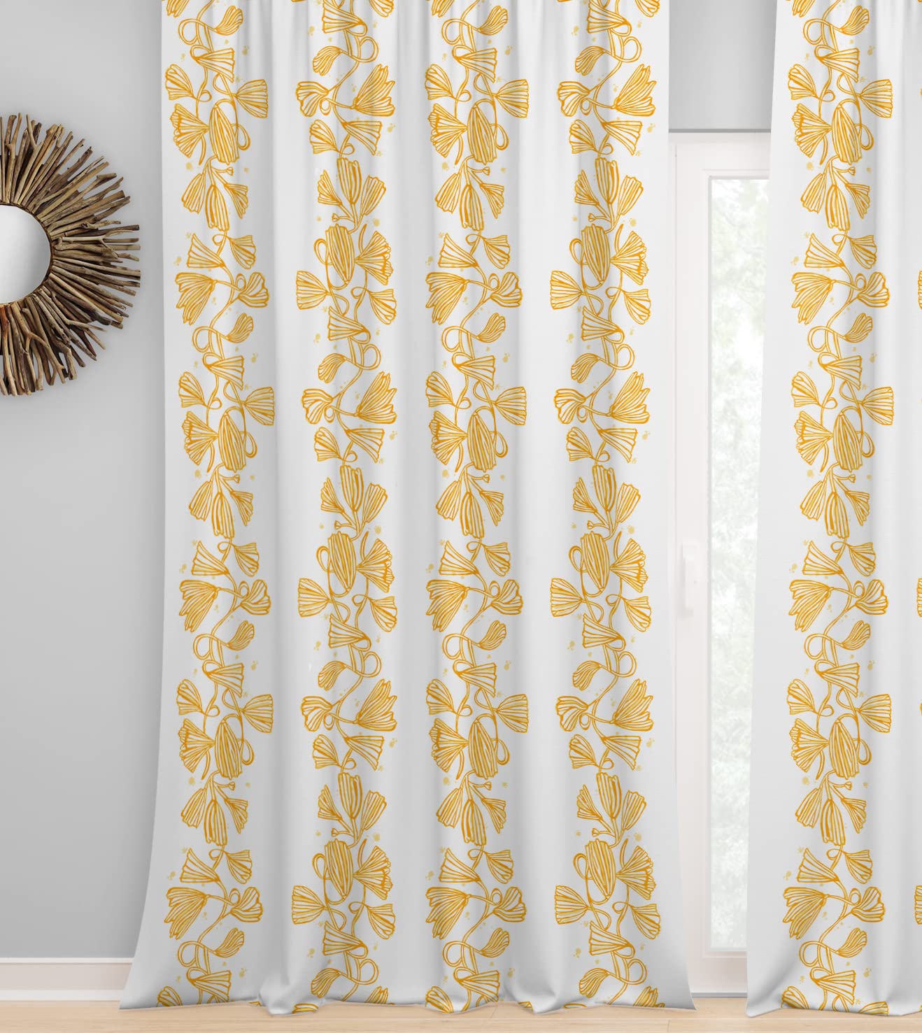 Totally in love with these curtains. The quality and print is so appealing. Curtains come with tabs, so we can wash it machine, unlike curtains with rings.
