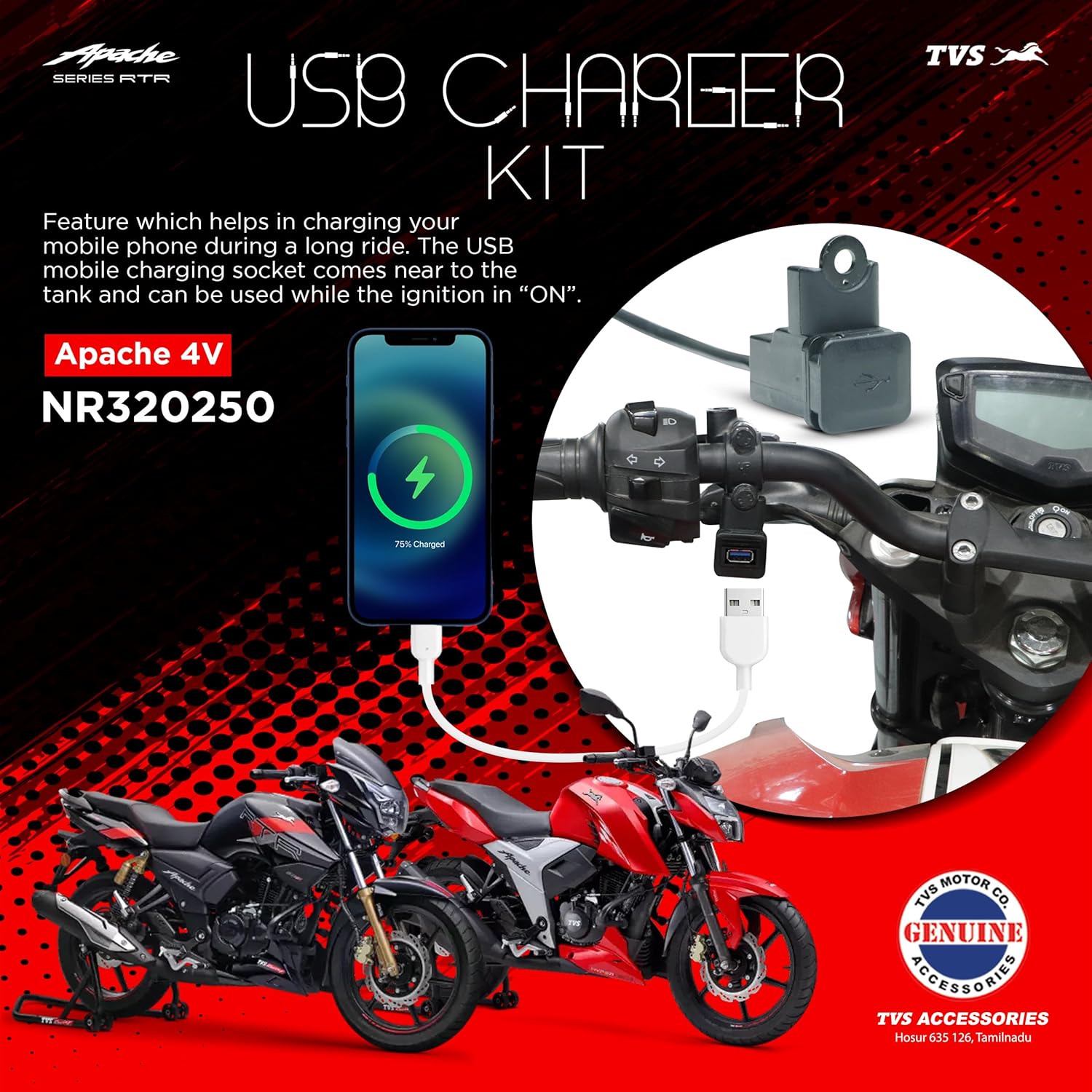 Nice product with high build quality. It support fast charging. For connecting to other bikes apart from TVS coupling needs to be cut and we can connect the red wire to positive and black to negative.For Bajaj Pulsar we can easily fit this item in the clutch lever bolt and fits perfectly.