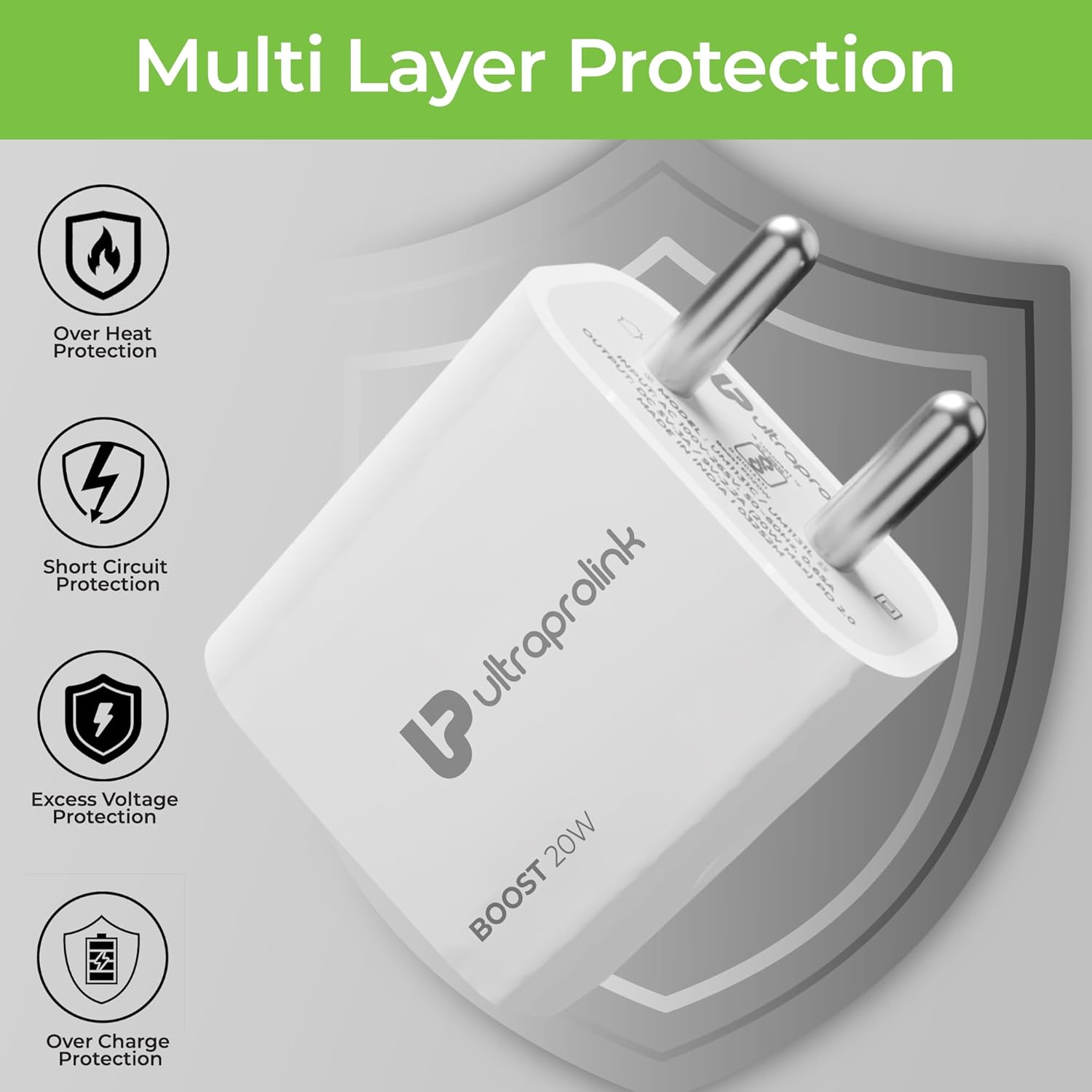 ULTRAPROLINK 20W PD Type C Fast Charger Adapter|Compatible For iPhone 14/14Plus/14Pro/14 Pro Max/iPhone 13/13 Pro/13 Pro Max/12/12 Pro/11/X/XR|Charge 50% In 30 Minutes|Made In India|Boost PD20,White