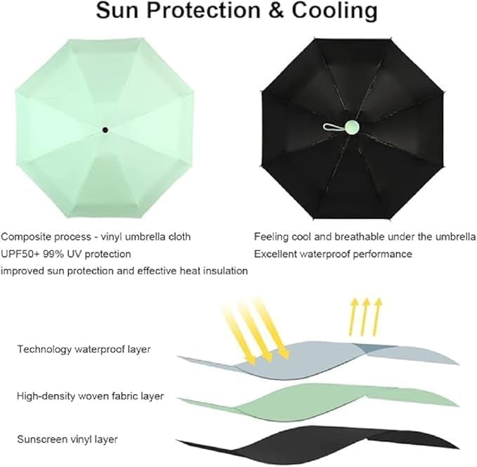 Umbrella, Mini Folding Windproof & Compact UV Umbrella for Sun Protection Rain Windproof Strong Large 3 Fold for Women Handbags,3 Fold for Men Women, Stylish & Compact