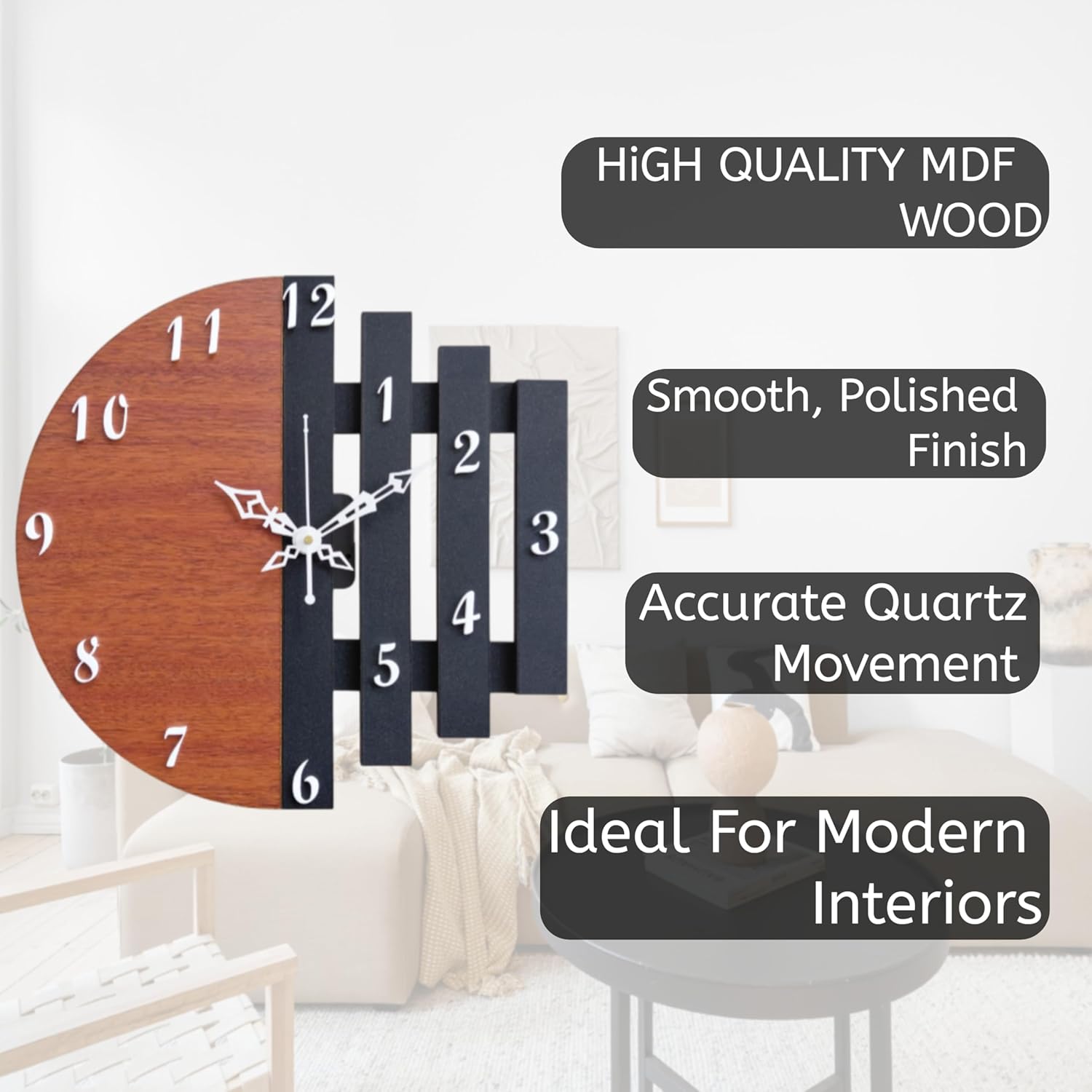 Unique Craft 3D Wooden Analog Wall Clock Antique Design for Living Room, Bedroom Wall, Home and Office – Brown – MD_UNQ-038