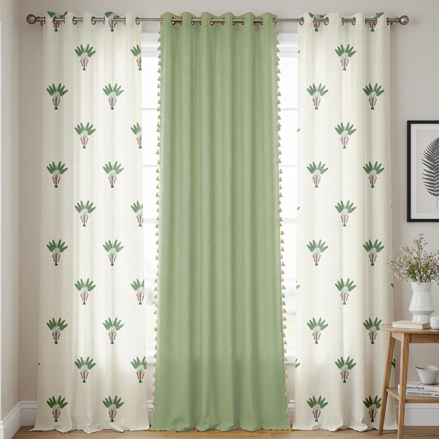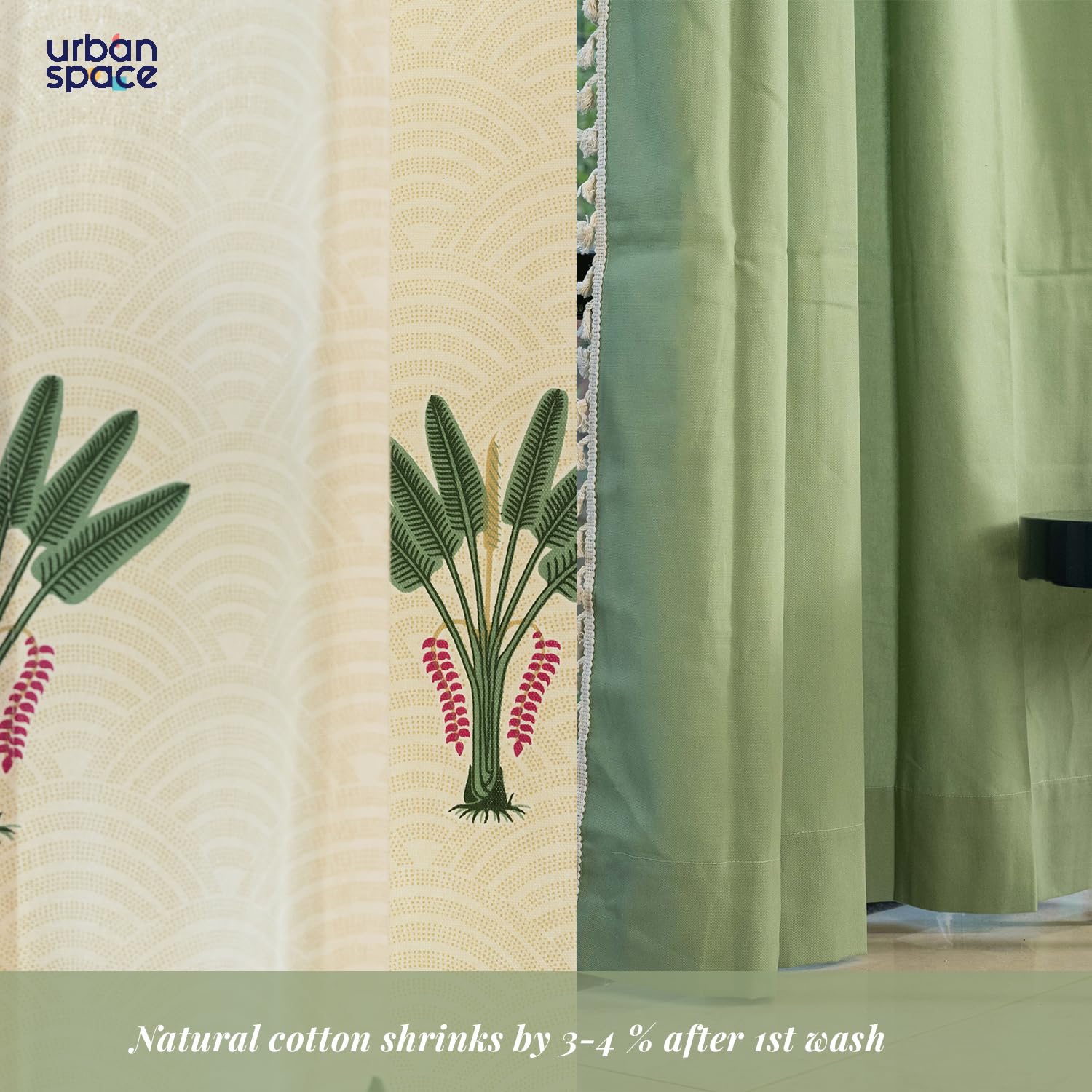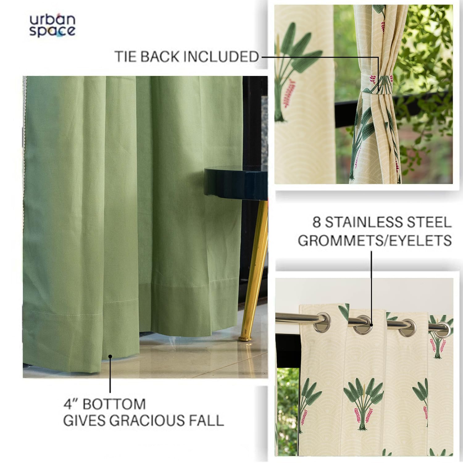8 reviews for Urban Space 100% Cotton Curtains for Window, Combo Set of 3 Curtains 5 feet Long, 60-65% Room Darkening Curtain, Tieback & Eyelets Included with Curtains for Home décor (Palm Lagoon Green, 5 Feet)