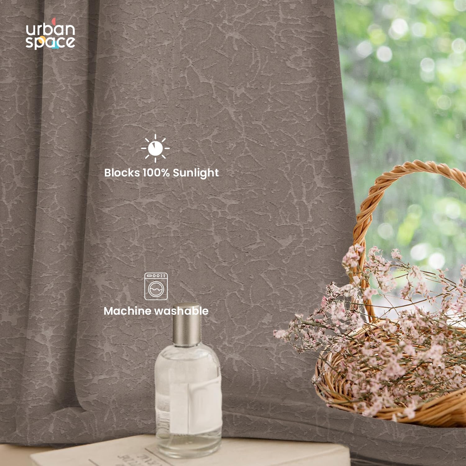 Urban Space Blackout Curtains for Window 5 Feet Long Set of 2, Embossed Abstract Design, 100% Light Blocking Blackout Curtain for Living Room, Curtains with Eyelets & Tieback(Earth Brown, 5 Feet)